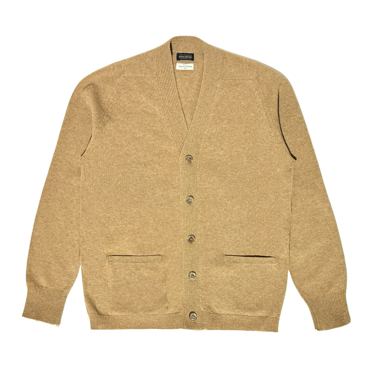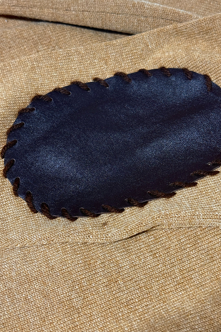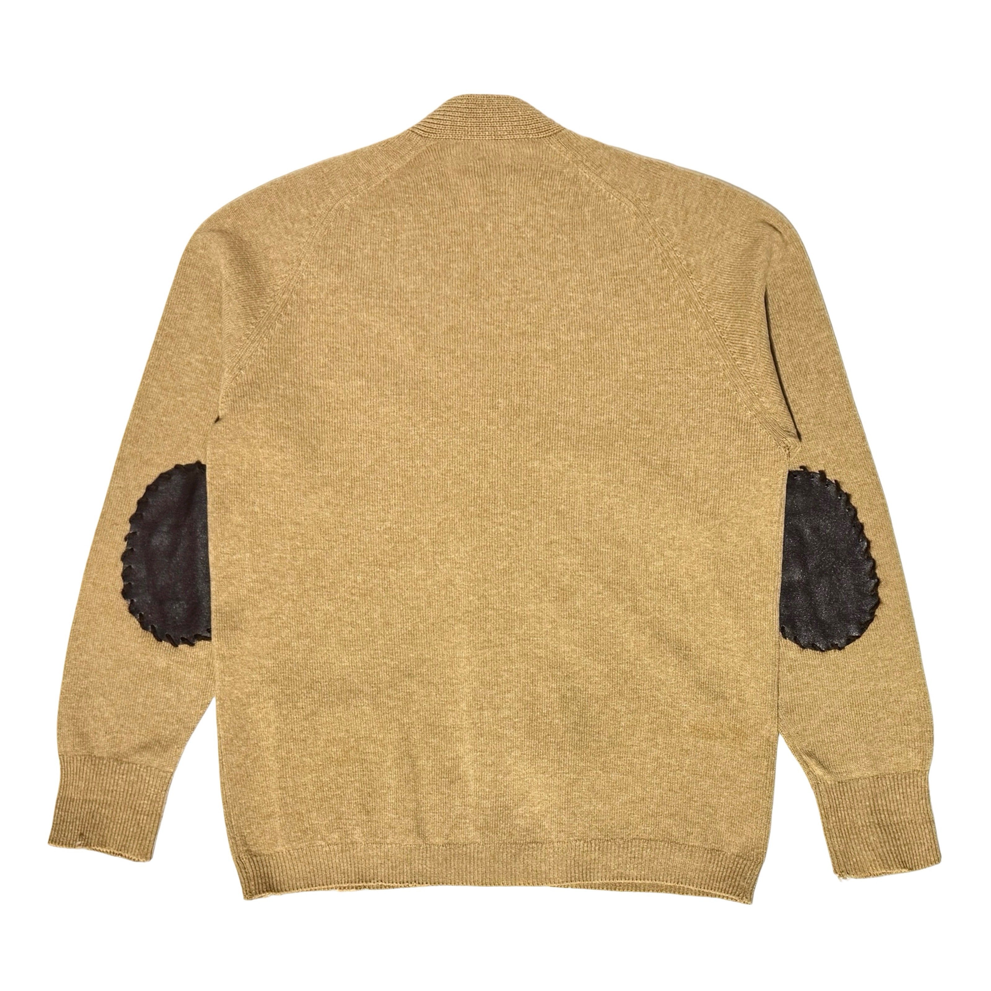 1960’S BROOKS BROTHERS MADE IN ENGLAND 100% LAMBSWOOL LEATHER ELBOW PATCHED CROPPED CARDIGAN KNIT SWEATER MEDIUM