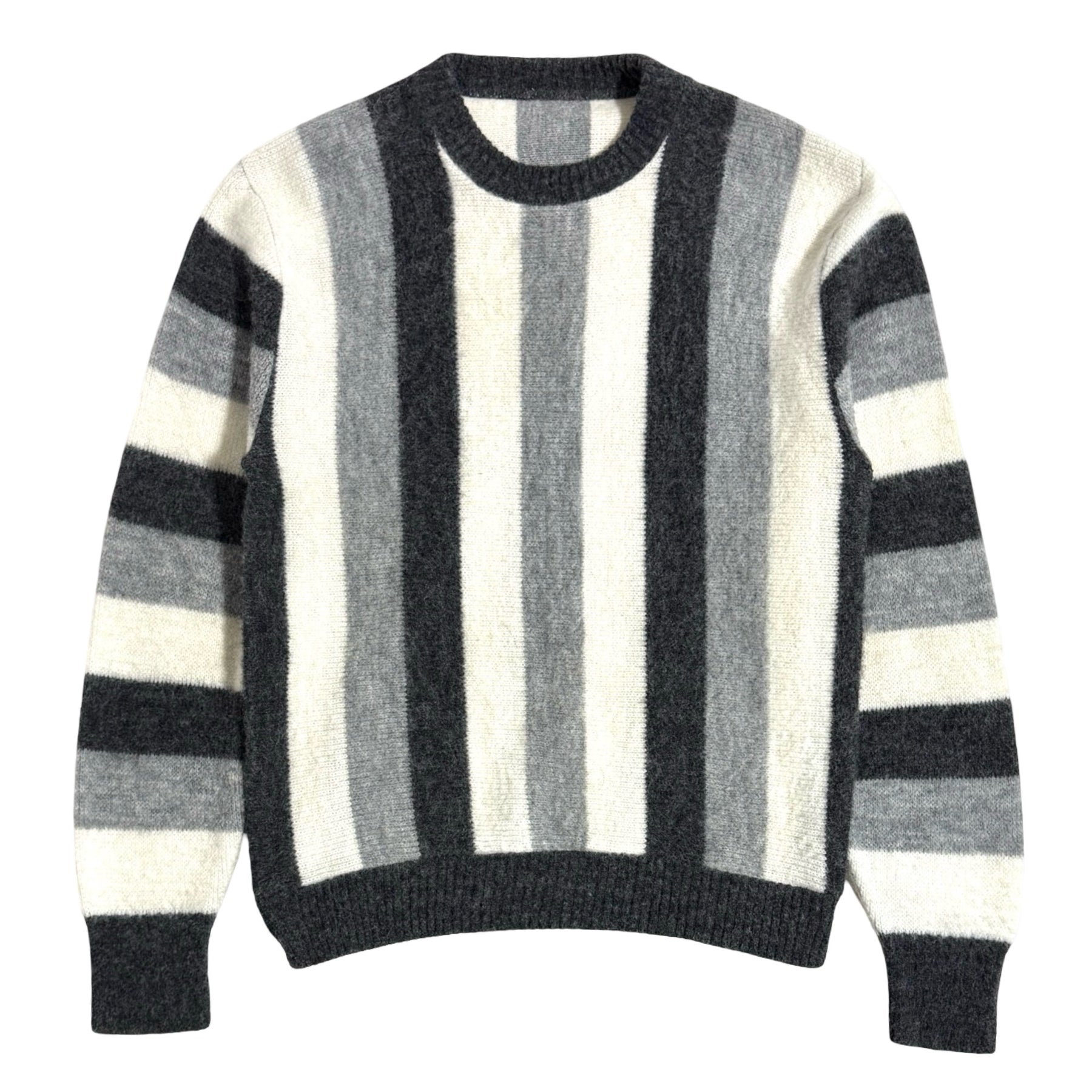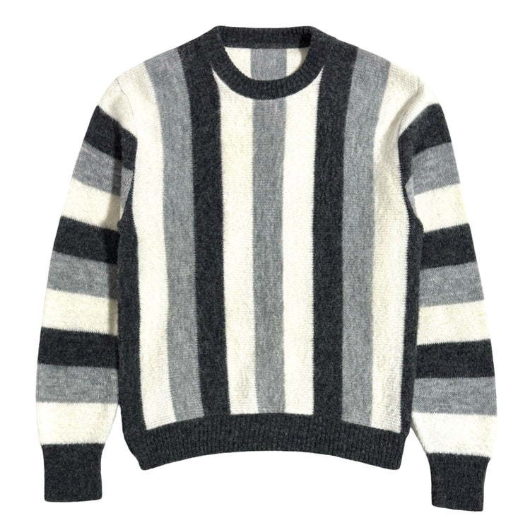 1960’S STRIPED WOOL MOHAIR FURRY CREWNECK KNIT SWEATER MEDIUM
