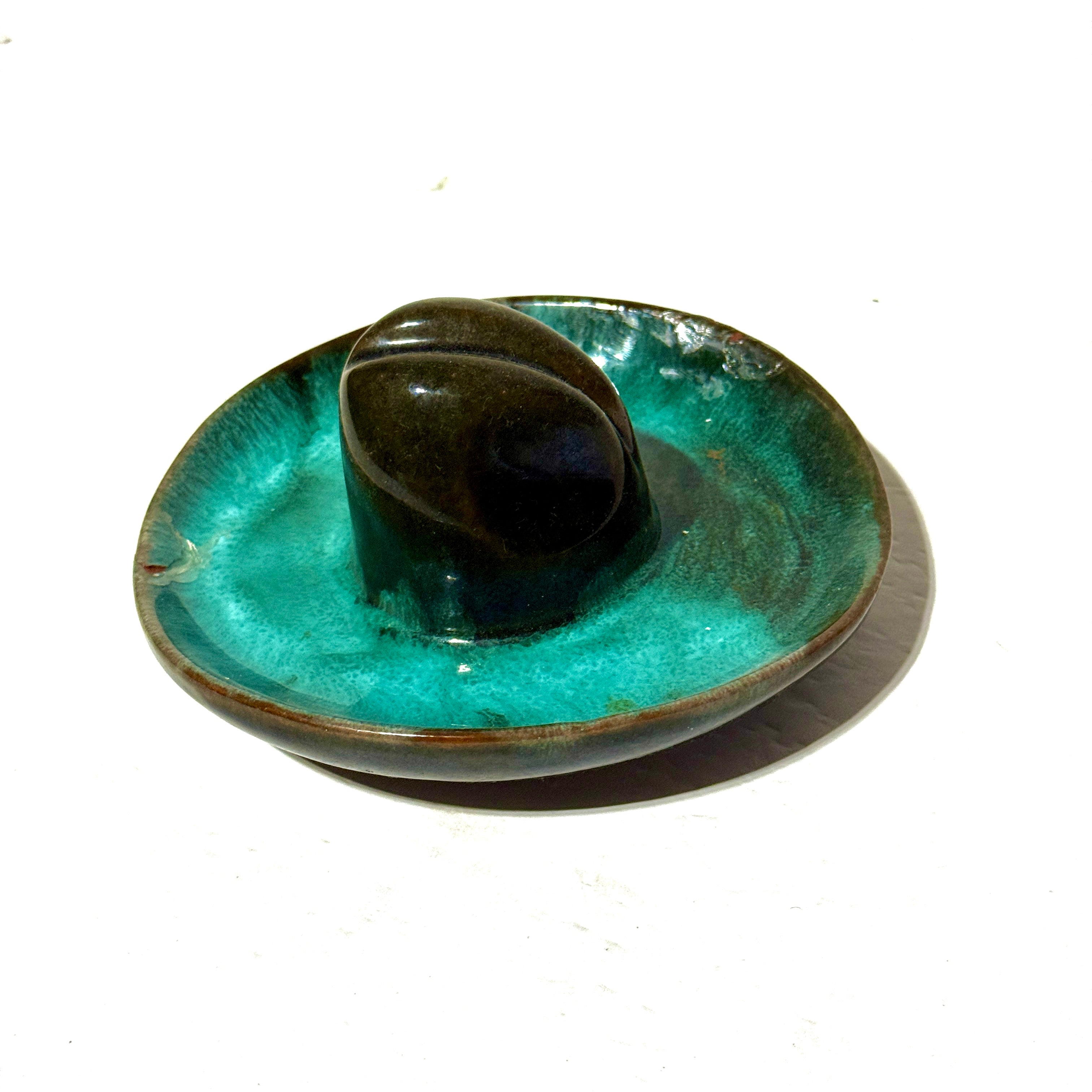 1960’S KIO MADE IN CANADA GLAZED CERAMIC REPAIRED COWBOY HAT TRAY
