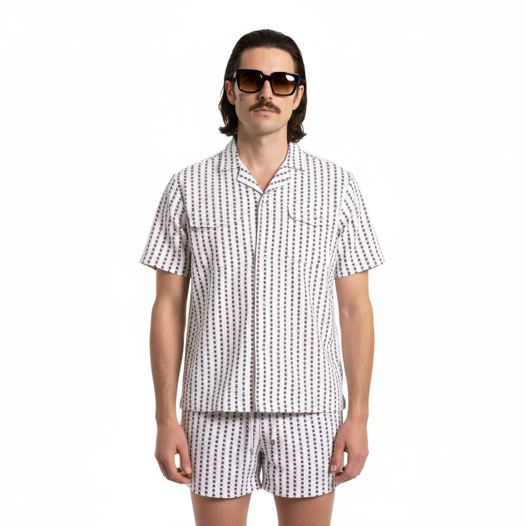 1960’S MASK HANDMADE FLORAL PRINTED SEERSUCKER SUMMER SET M/L