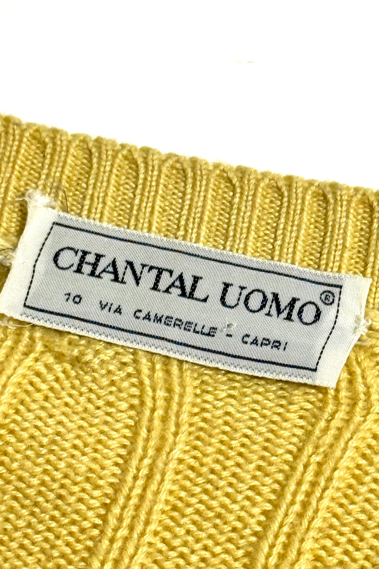 1970’S CHANTAL UOMO CAPRI MADE IN ITALY SILK & CASHMERE CABLE KNIT CREWNECK SWEATER X-LARGE