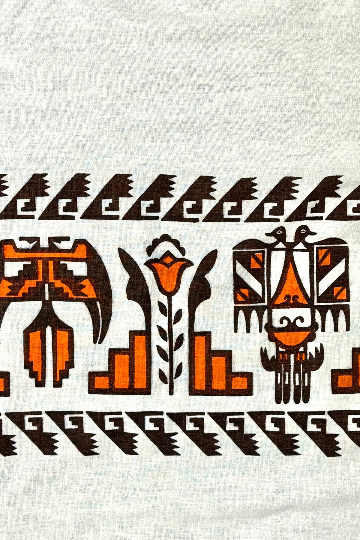 1970’S ORANGE BORDERED HAND FLAT WOVEN 56” X 80” BLANKET RUG