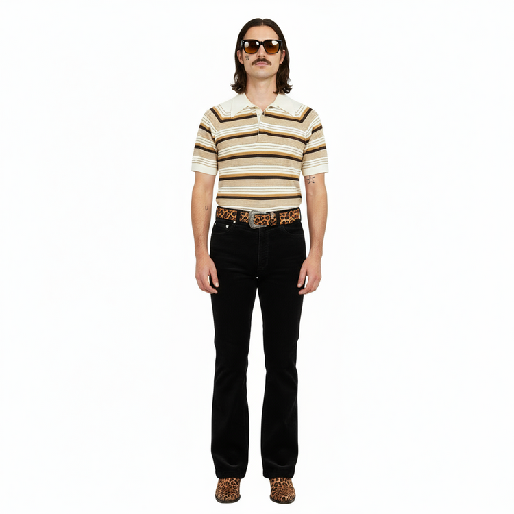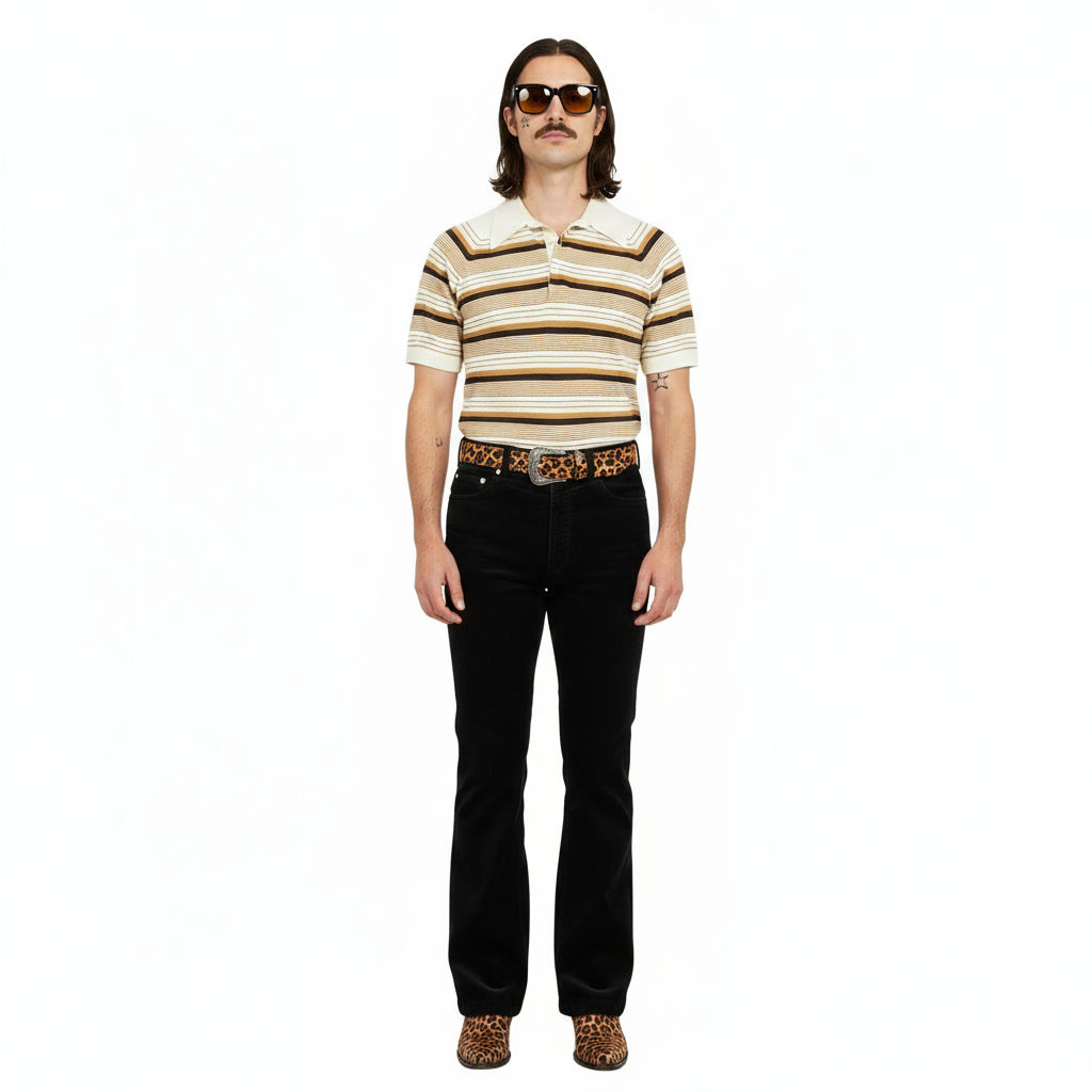 1970’S PENNEY’S MADE IN USA CROPPED STRIPED KNIT S/S POLO SHIRT LARGE