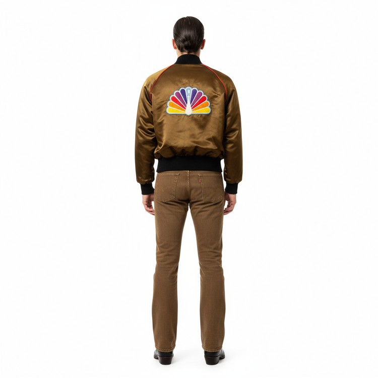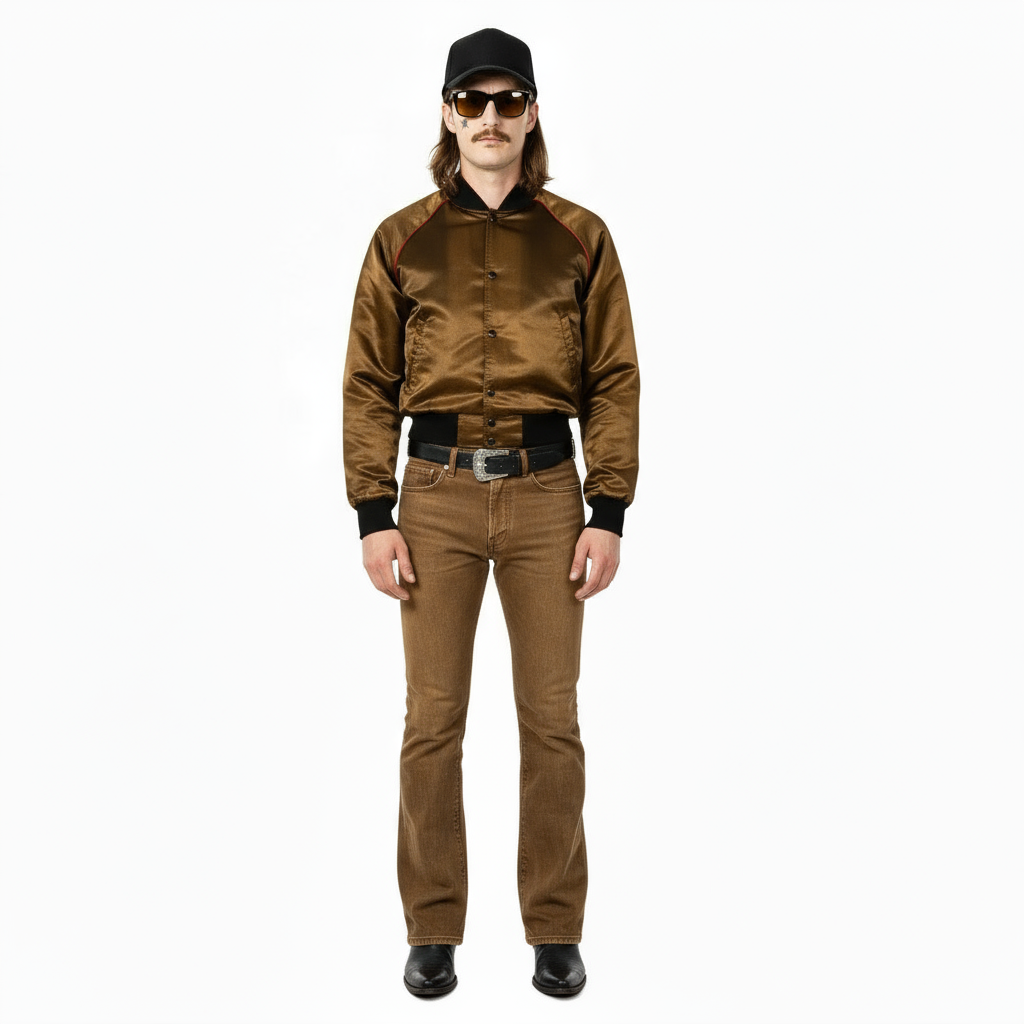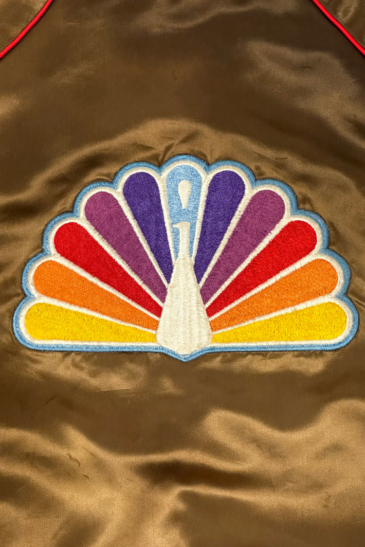 1970’S PEACOCK SUN FADED MADE IN USA SATIN BUTTON BASEBALL JACKET LARGE