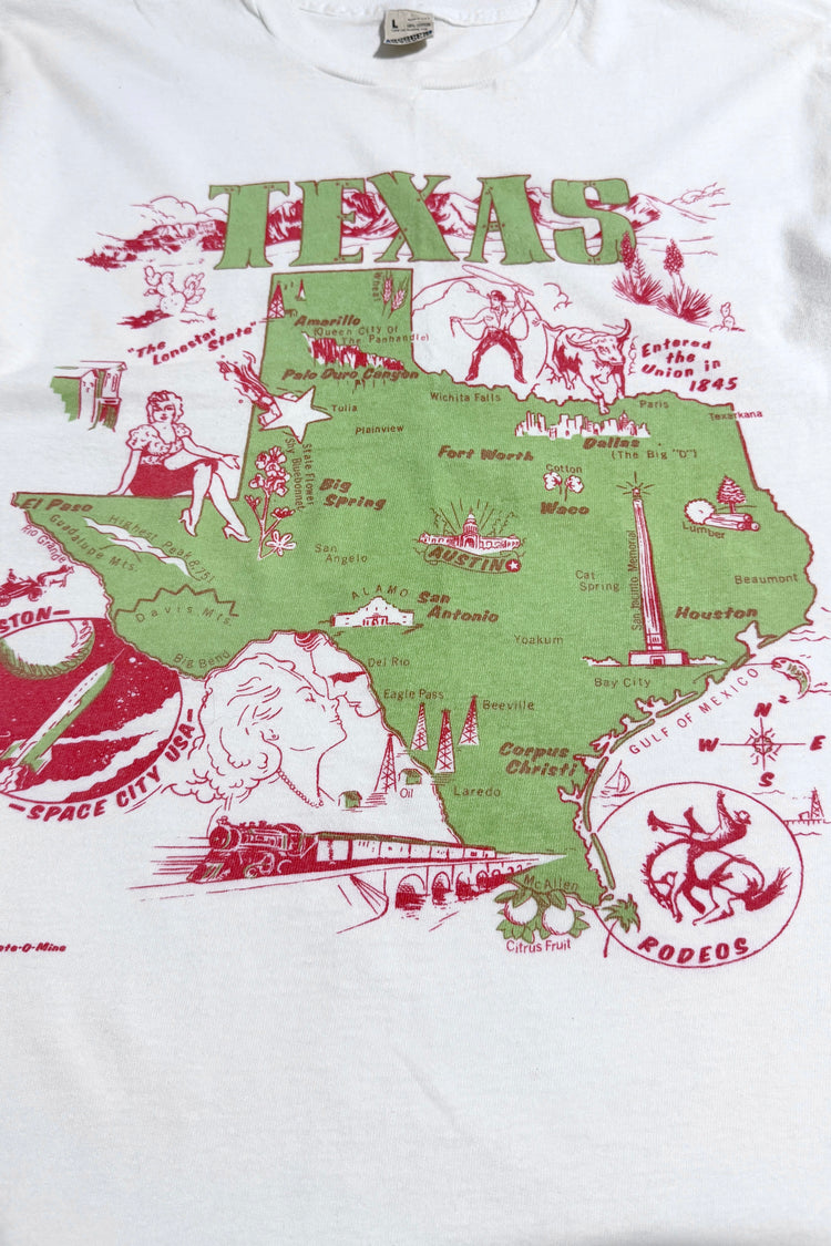 1980’S TEXAS MADE IN USA SINGLE STITCH WHITE JERSEY S/S T-SHIRT LARGE