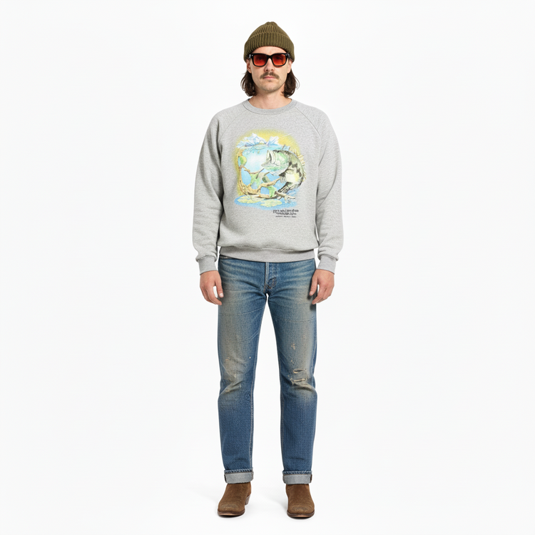 1980’S BIG MOUTH BASS FISHING MADE IN CANADA FLEECE RAGLAN SLEEVE CREWNECK SWEATER LARGE
