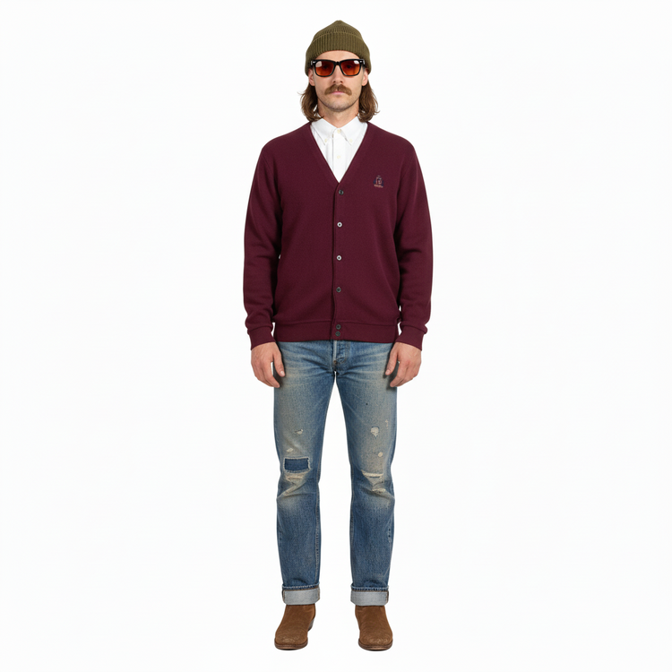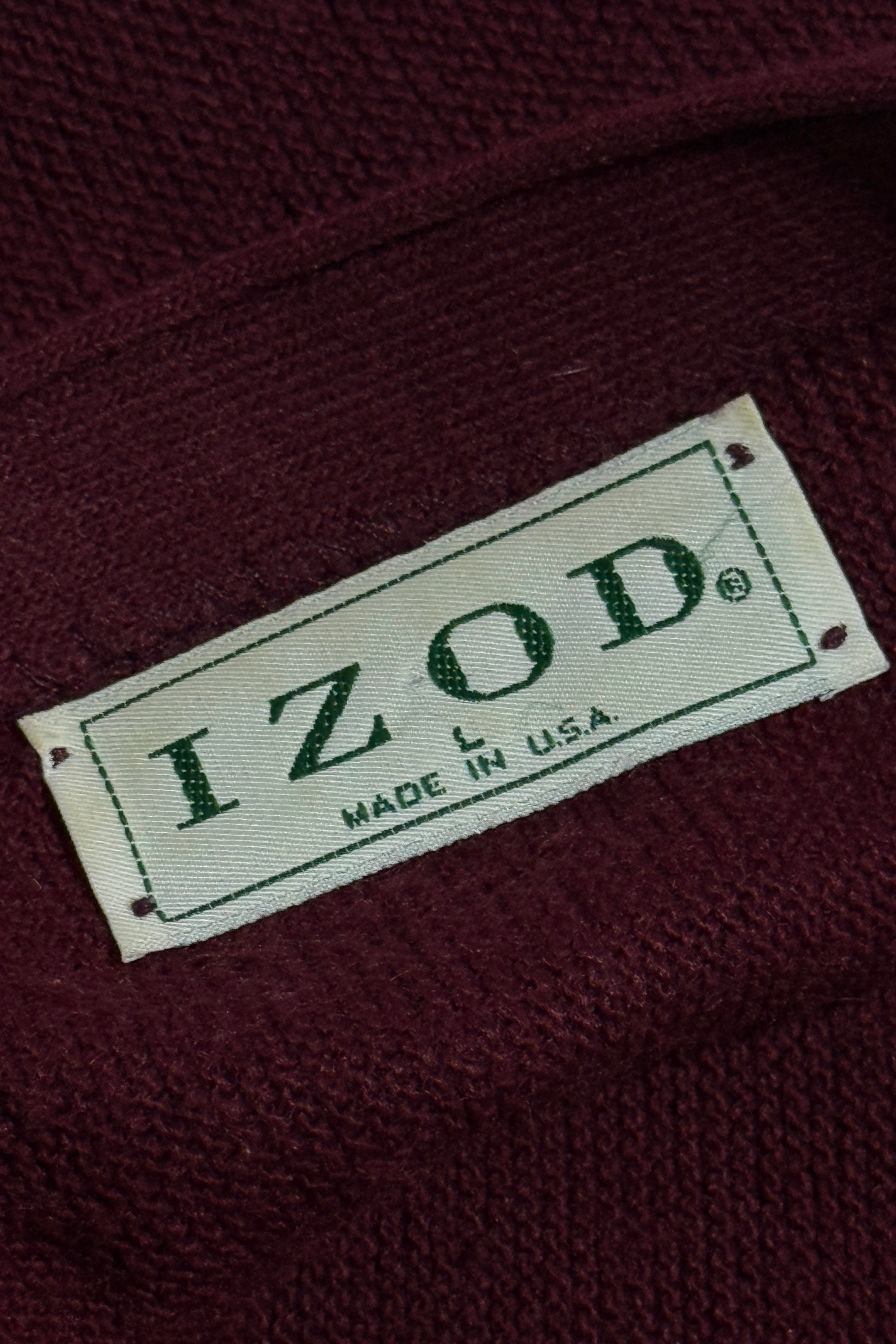 1980’S IZOD MADE IN USA CREST LOGO EMBROIDERED KNIT CARDIGAN SWEATER LARGE