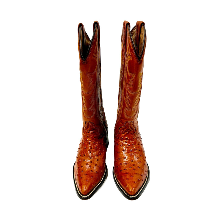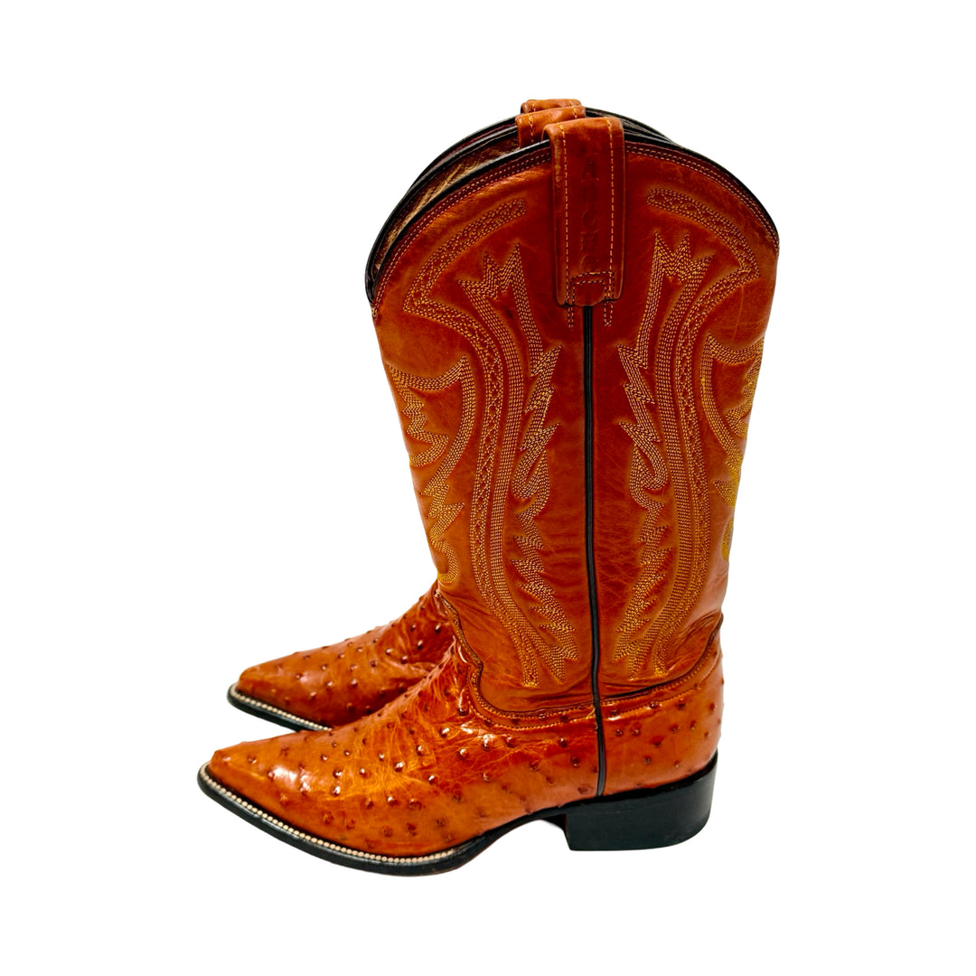1980’S TAN LEATHER MADE IN USA EMBROIDERED COWBOY BOOTS 9