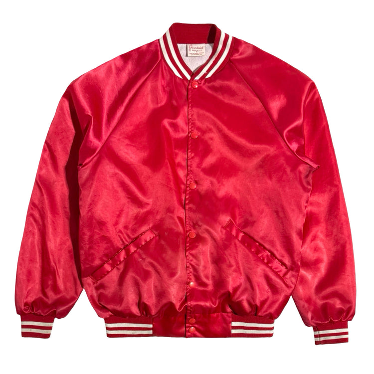 1980’S COUNTRY CADILLAC MADE IN USA CROPPED SATIN RAGLAN SLEEVE BASEBALL JACKET LARGE