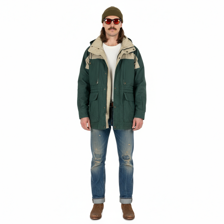 1980’S GANT MADE IN USA CONTRAST PANEL HOODED PARKA JACKET MEDIUM