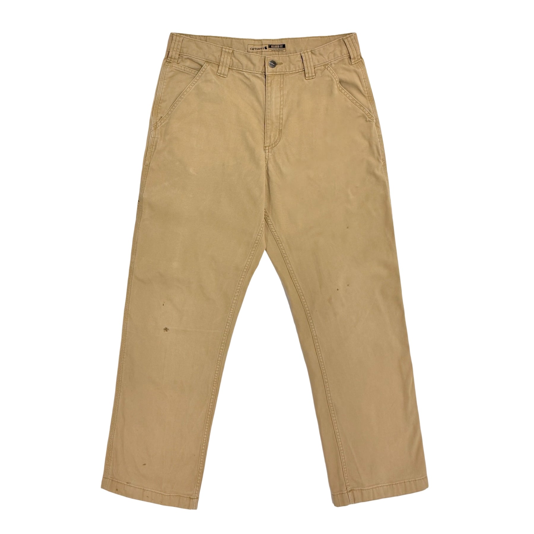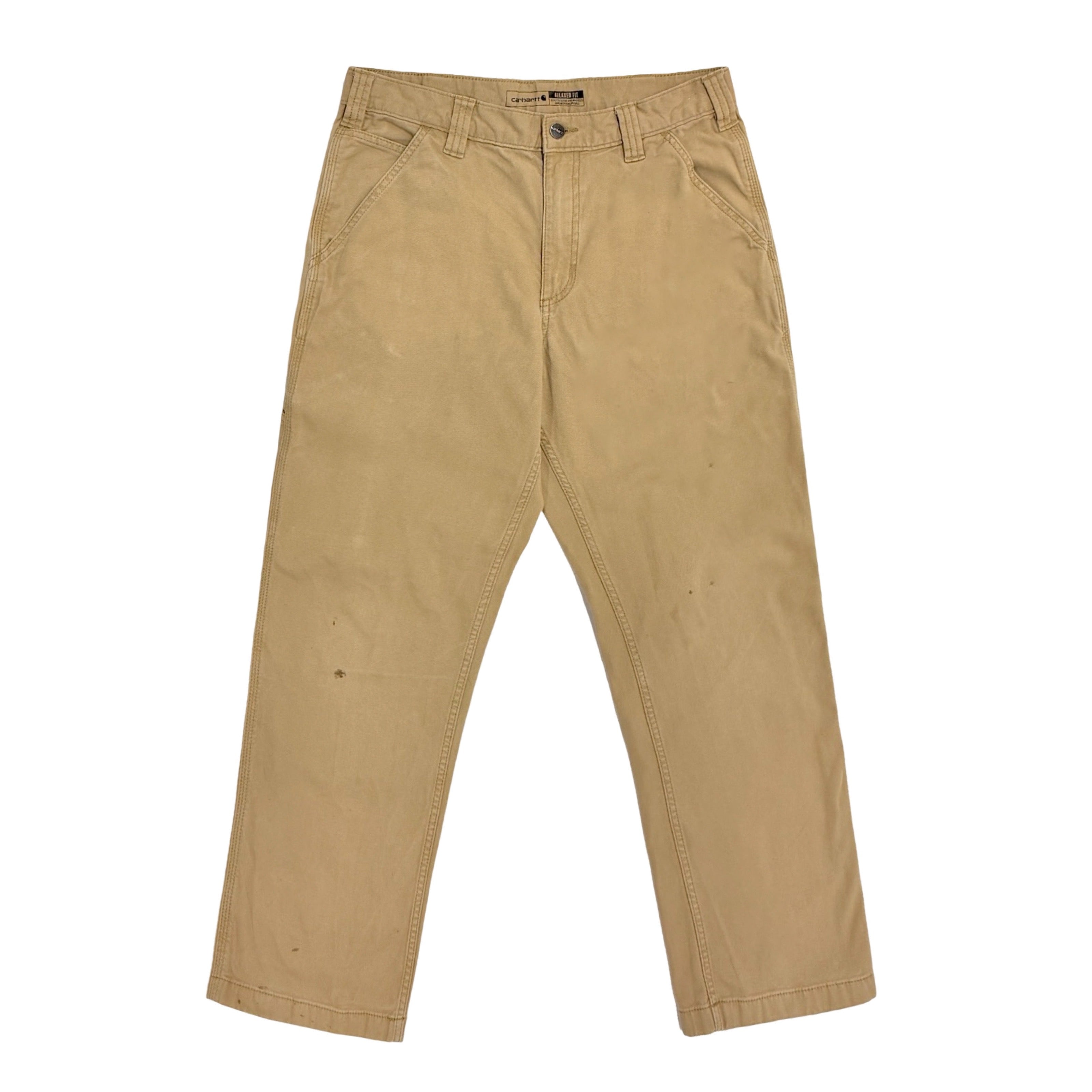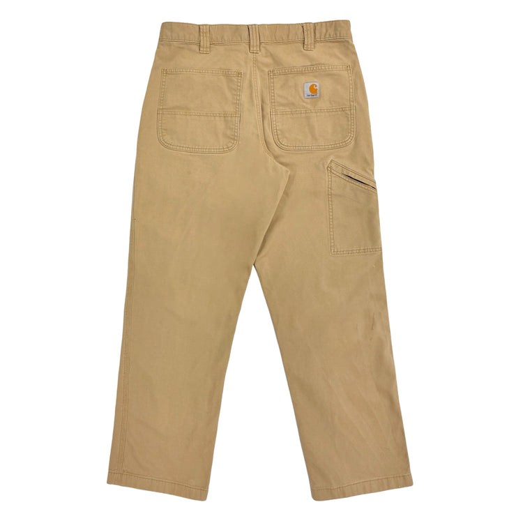 2000’S WRANGLER THRASHED & FADED KHAKI CANVAS CARPENTER WORKWEAR PANTS 30 X 30