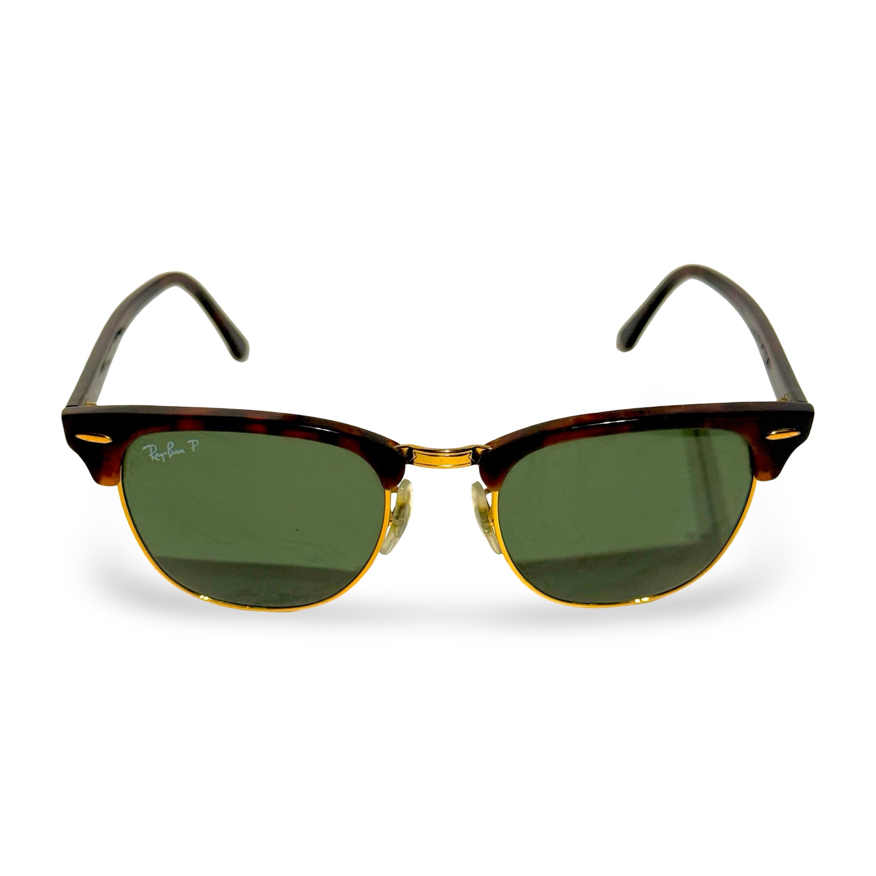 2000’S RAY BAN MADE IN ITALY TORTOISE / GOLD FRAME CLUBMASTER SUNGLASSES