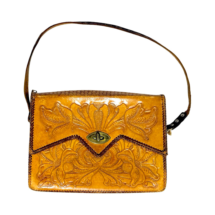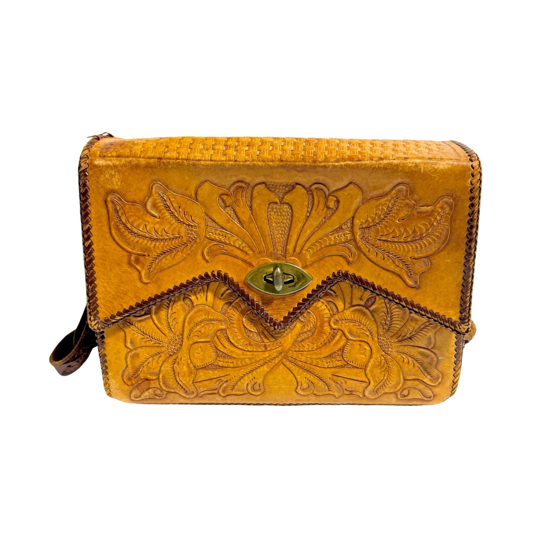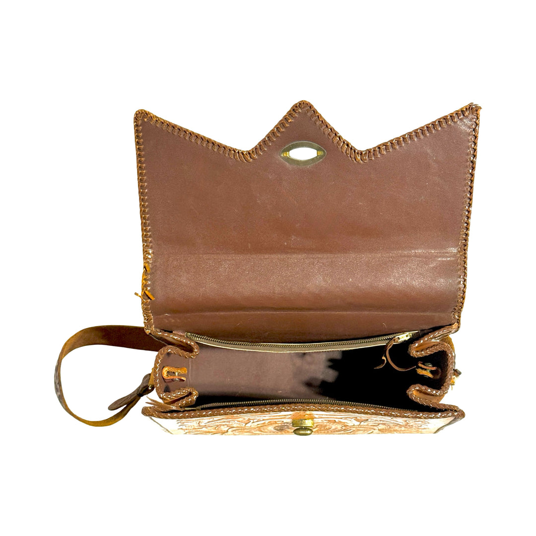 1950’S MADE IN USA HAND TOOLED WESTERN CLASPED FLAP LEATHER PURSE