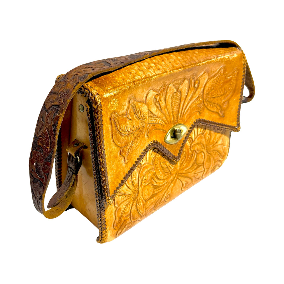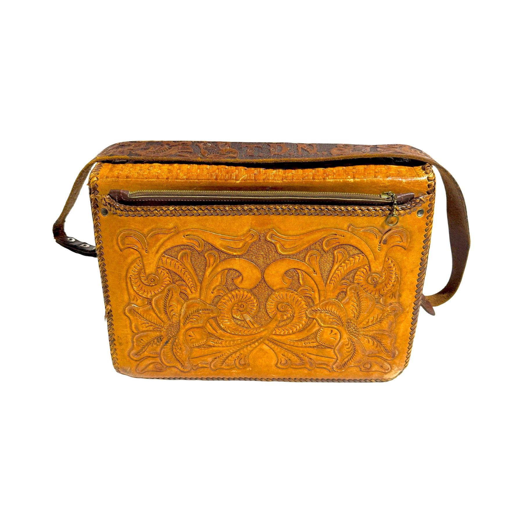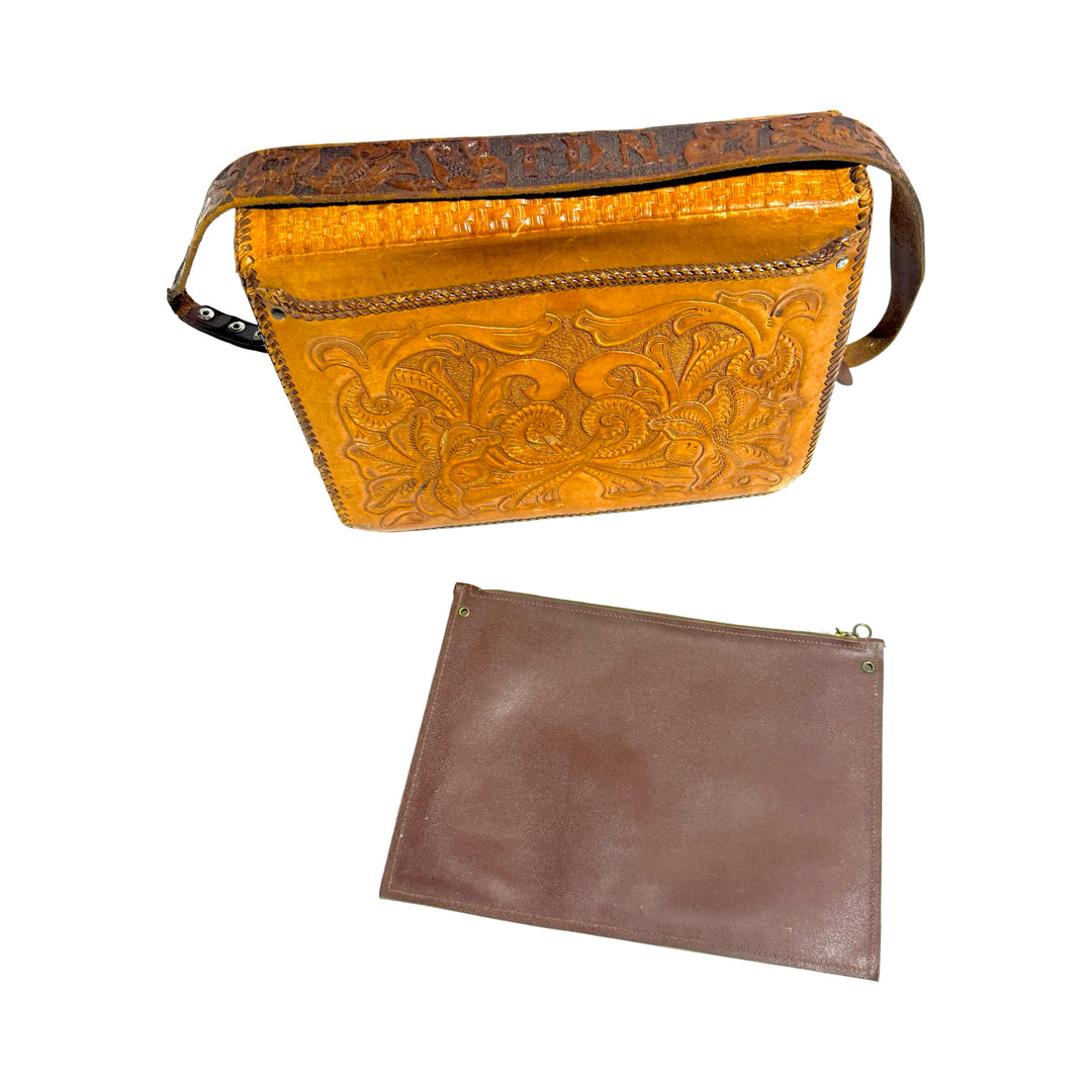 1950’S MADE IN USA HAND TOOLED WESTERN CLASPED FLAP LEATHER PURSE