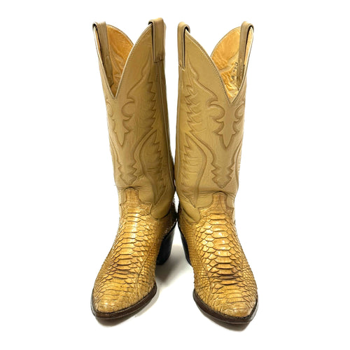 1980’S TAN LEATHER MADE IN USA EMBROIDERED COWBOY BOOTS 9