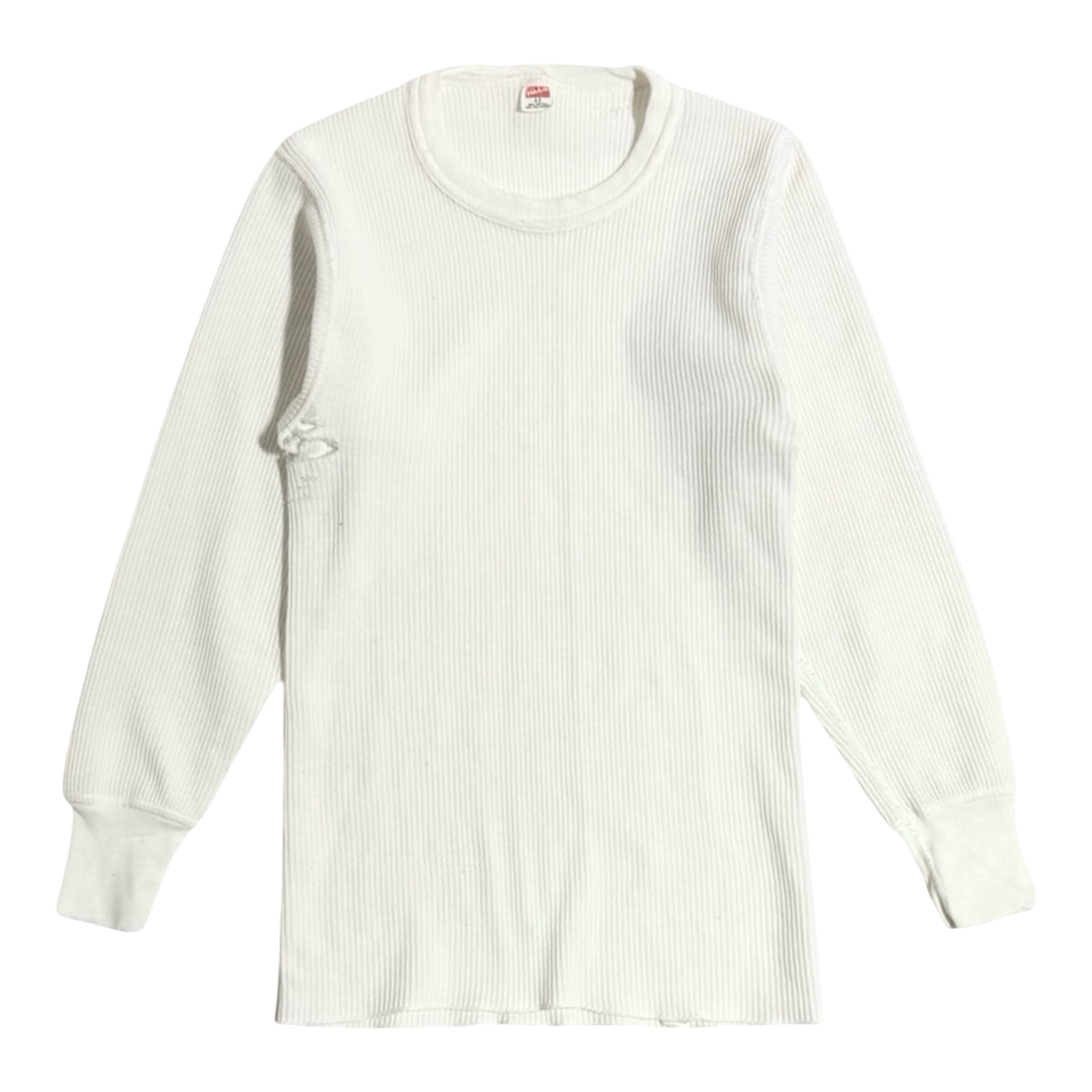 1970’S HANES MADE IN USA THRASHED WAFFLE KNIT THERMAL L/S SHIRT LARGE