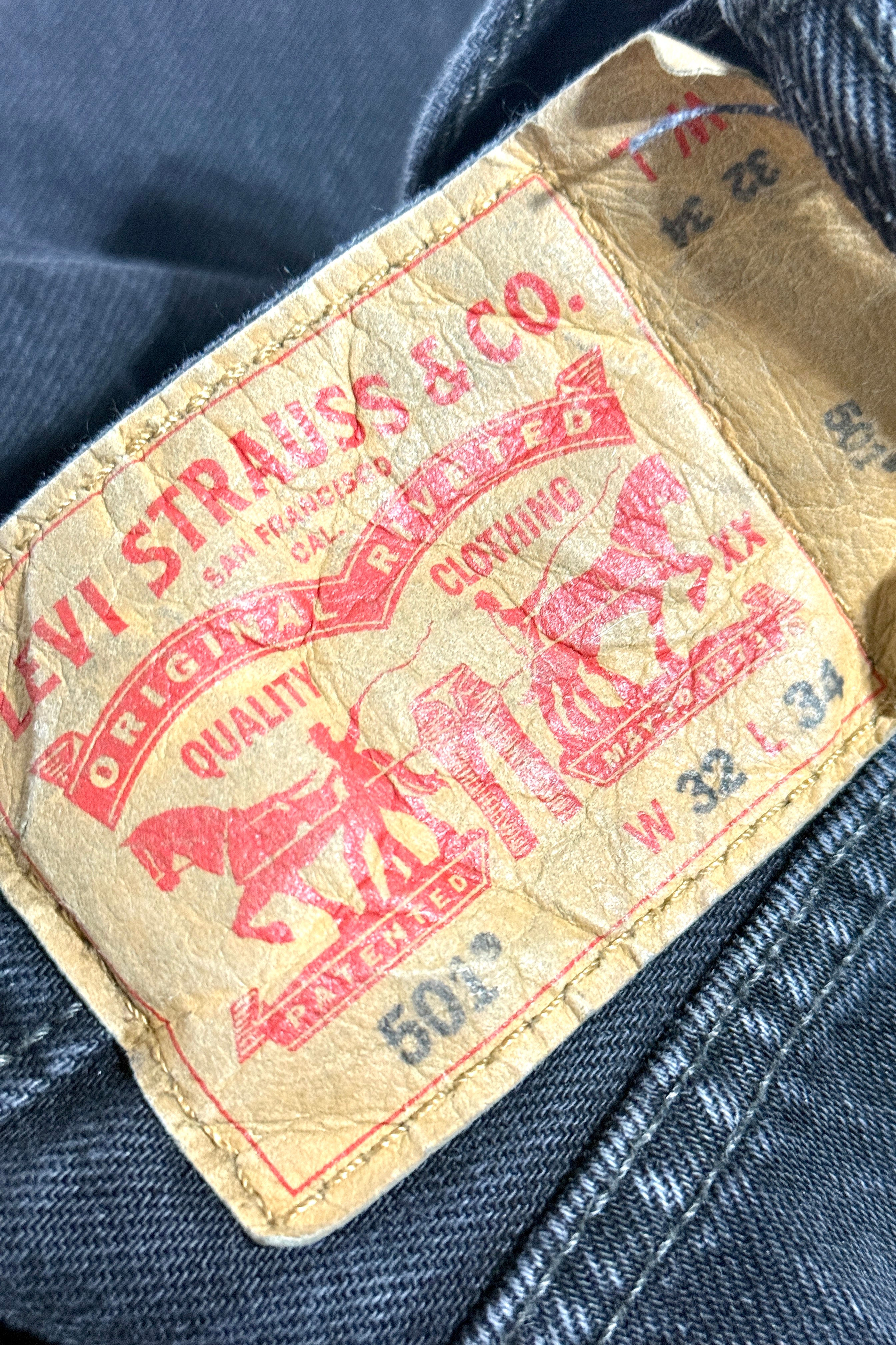 MASK X LEVI’S 501XX WESTERN HAND CHAINSTITCHED LIGHT WASH DENIM JEANS 34 X 30