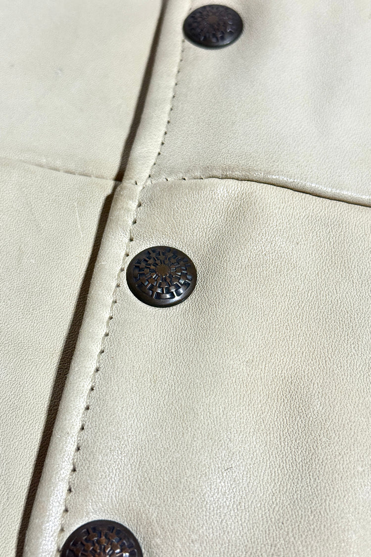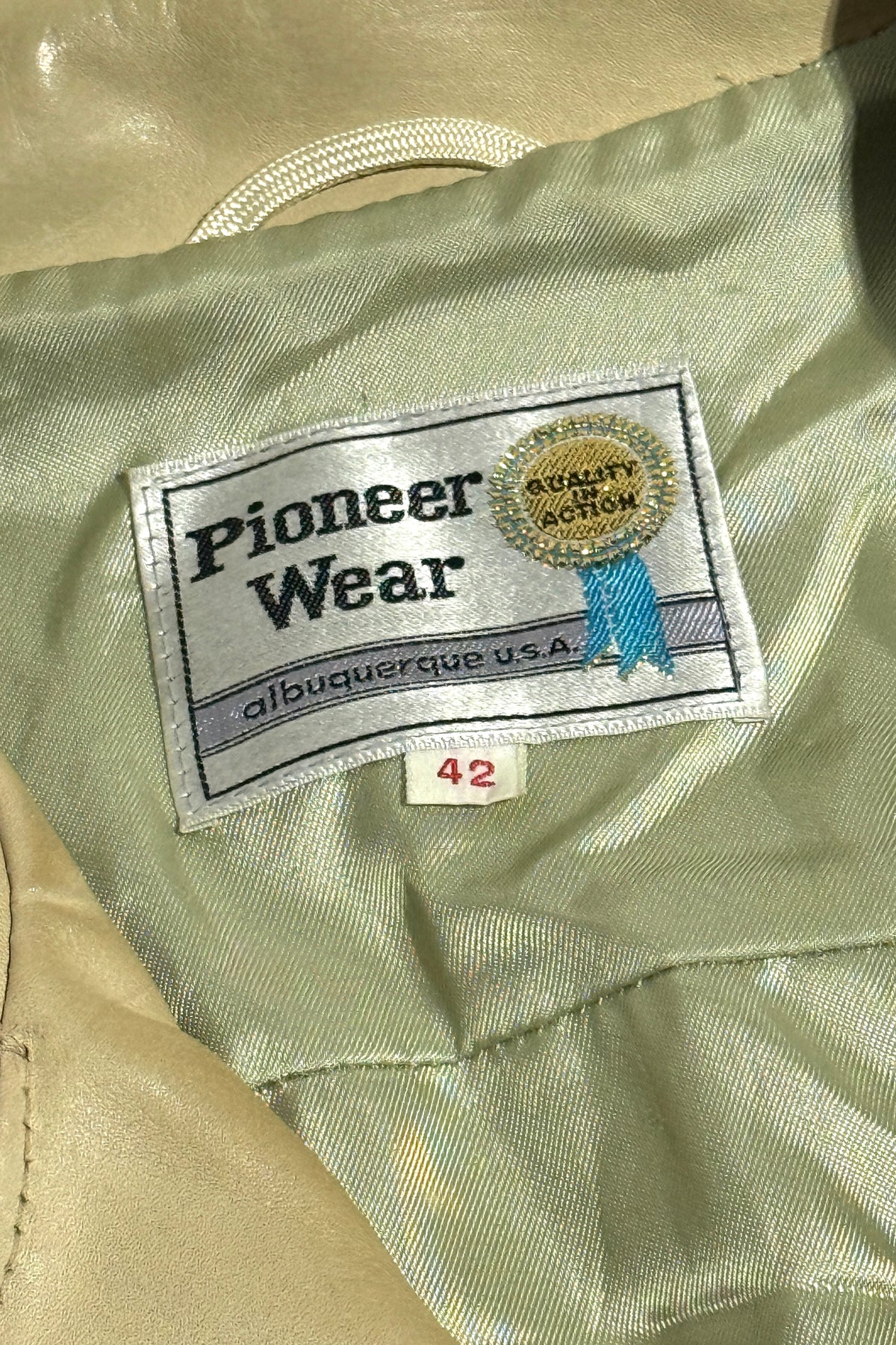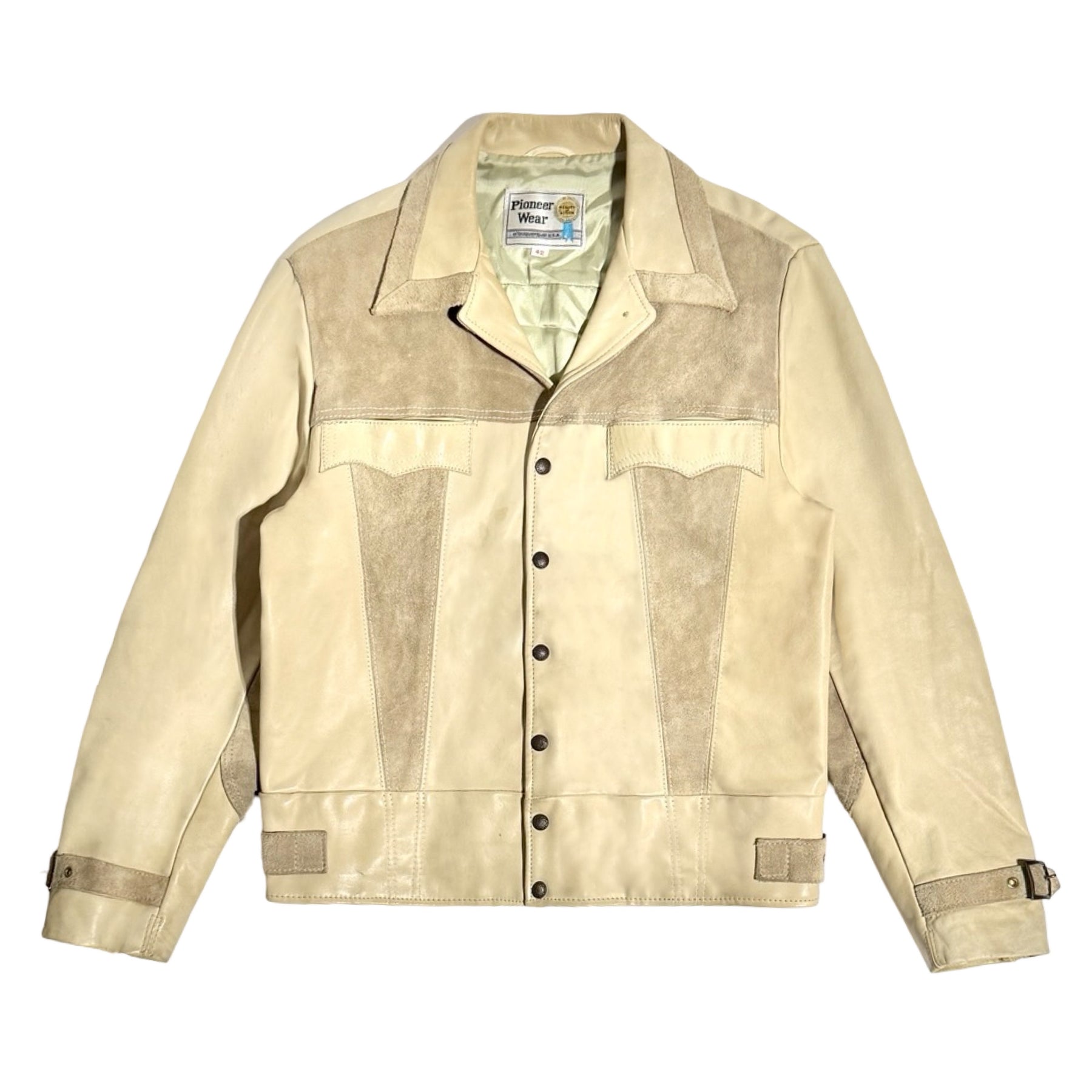 1970’S PIONEER WEAR MADE IN USA CROPPED NAPPA LAMBSKIN CONTRAST SATIN LINED LEATHER TRUCKER JACKET LARGE