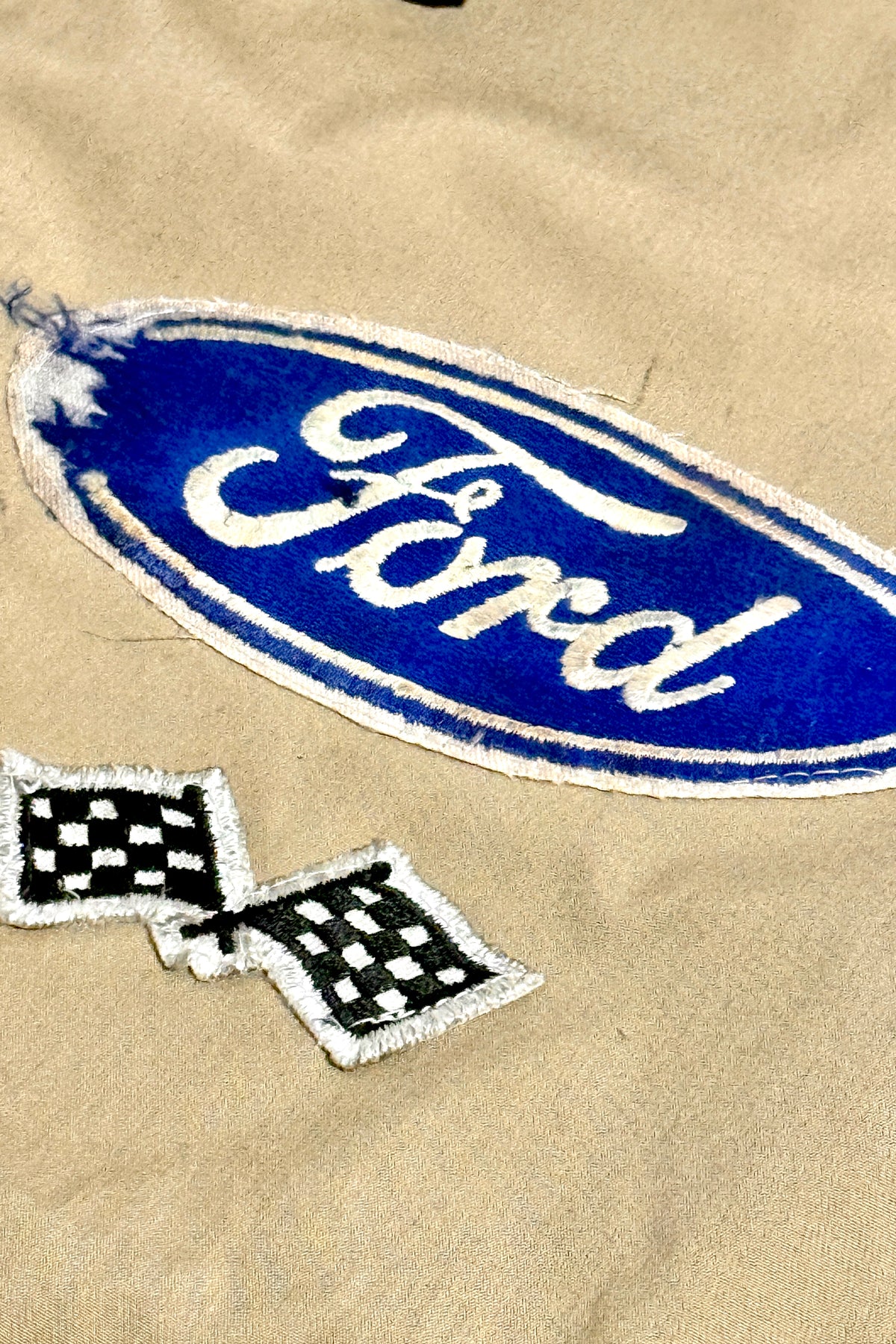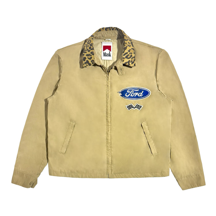 1970’S MASK MADE IN USA CROPPED LEOPARD PRINT COLLAR FORD RACING JACKET LARGE