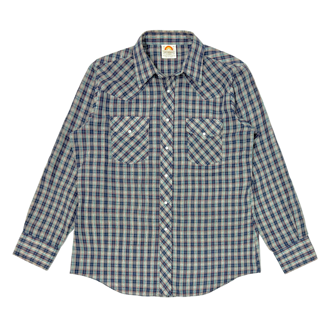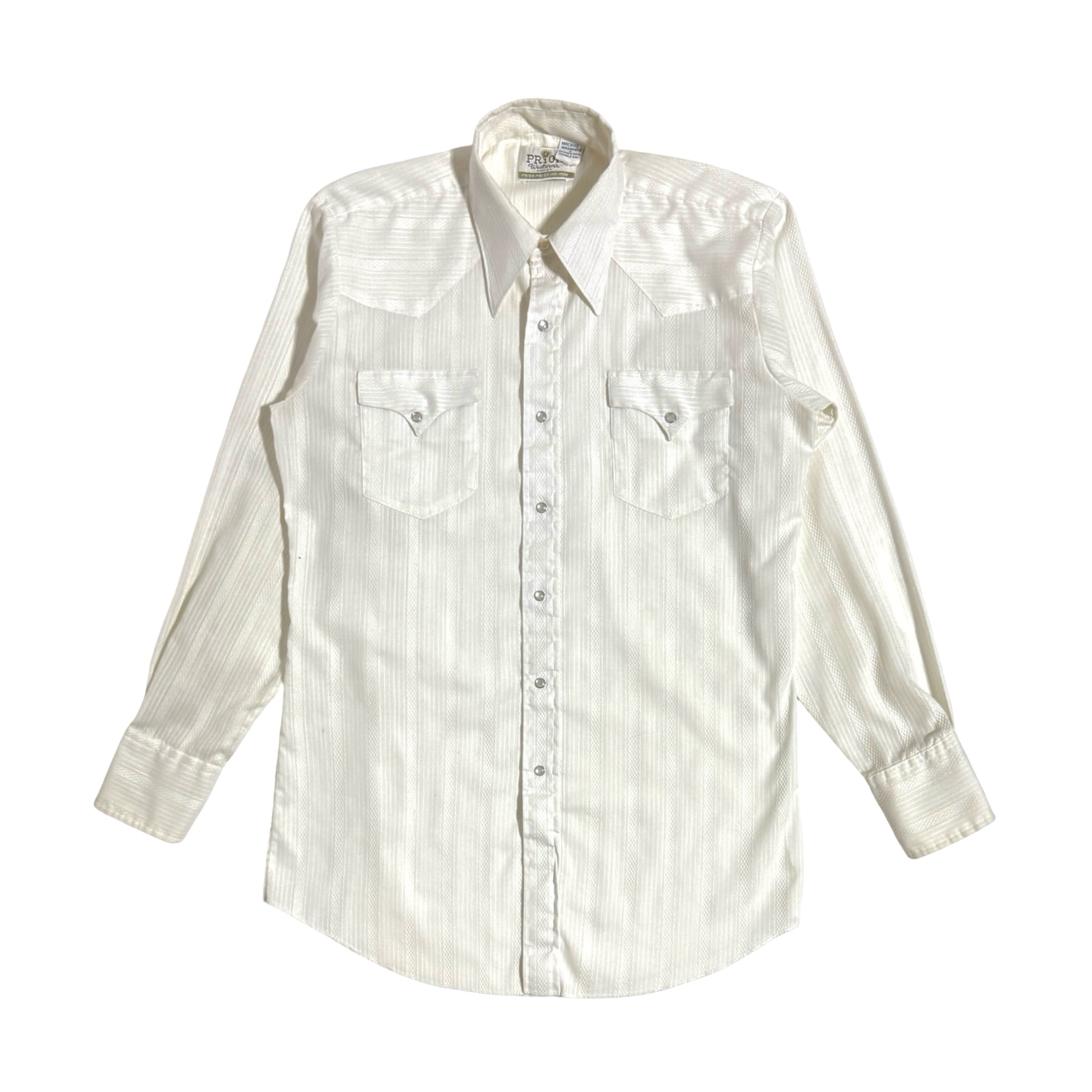 1960’S PRIOR WESTERNS DENVER MADE IN USA PATTERNED WOVEN PEARL SNAP L/S B.D. WESTERN SHIRT LARGE