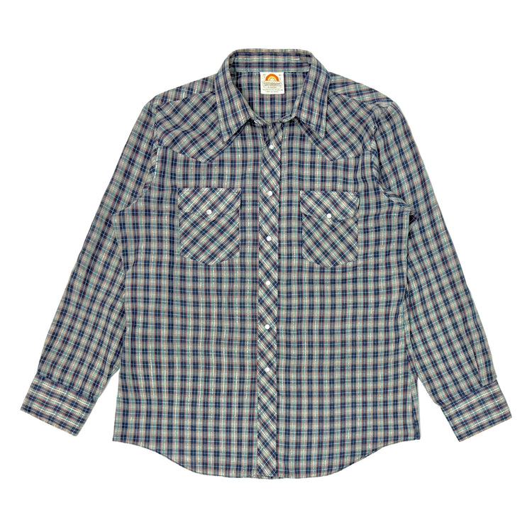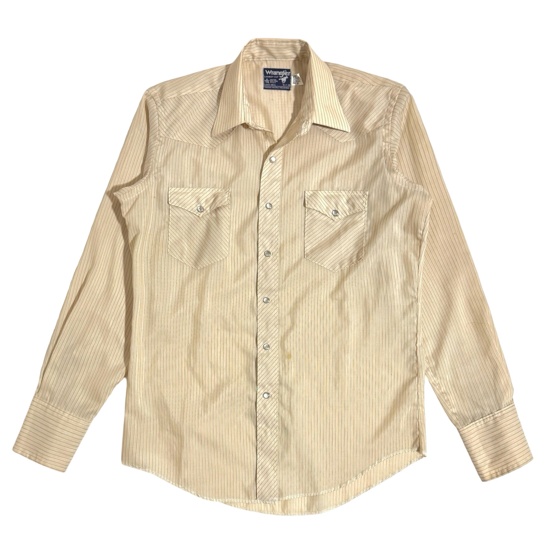 1990’S WRANGLER MADE IN USA STRIPED WESTERN PEARL SNAP L/S B.D. SHIRT LARGE