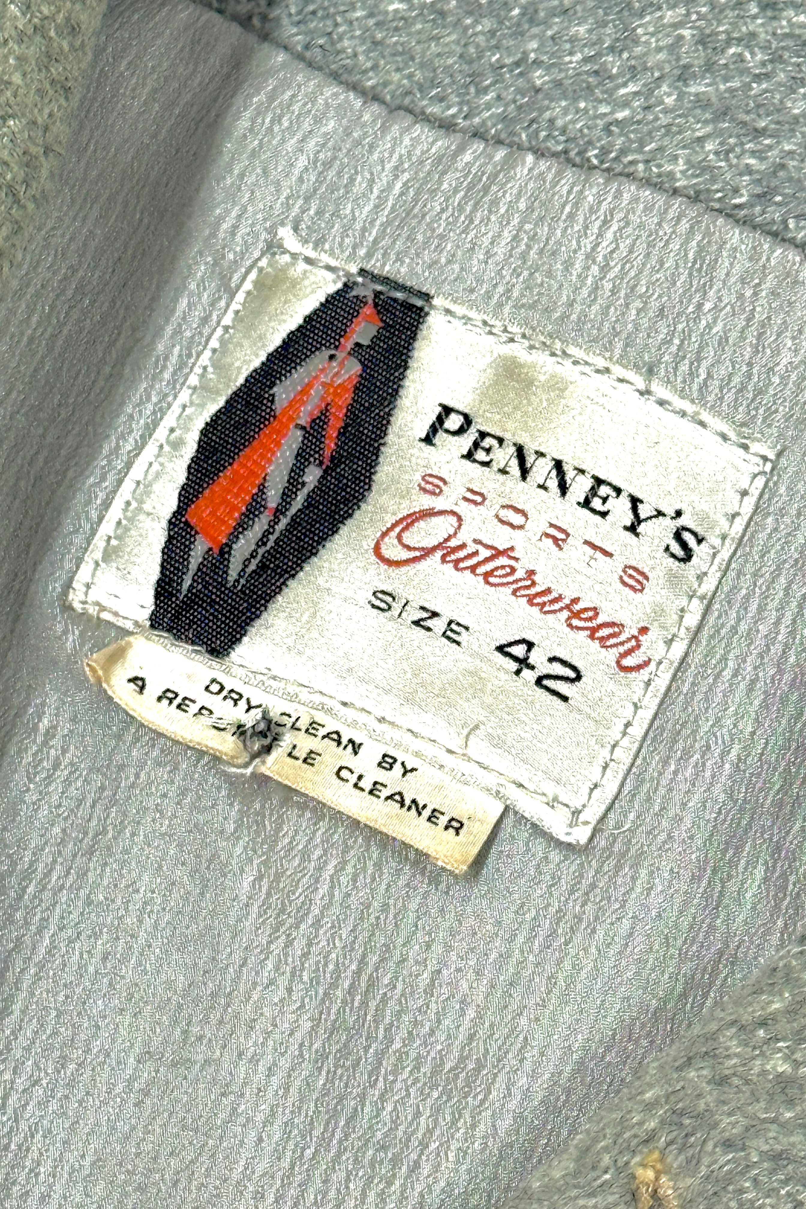 1970’S PEACOCK SUN FADED MADE IN USA SATIN BUTTON BASEBALL JACKET LARGE