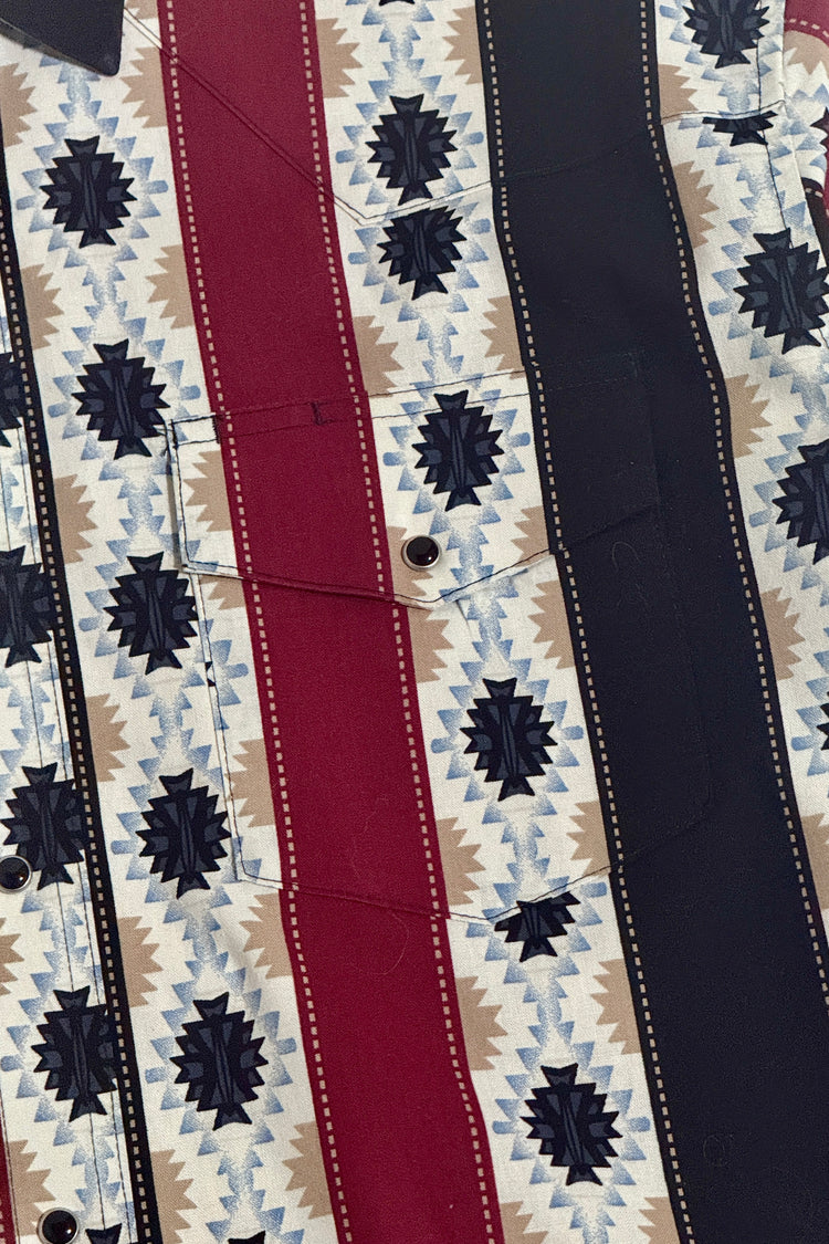 1990’S WRANGLER MADE IN USA SOUTHWESTERN PRINT WESTERN PEARL SNAP L/S B.D. SHIRT LARGE