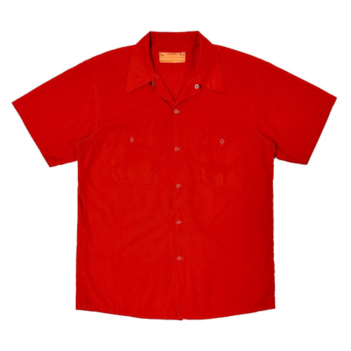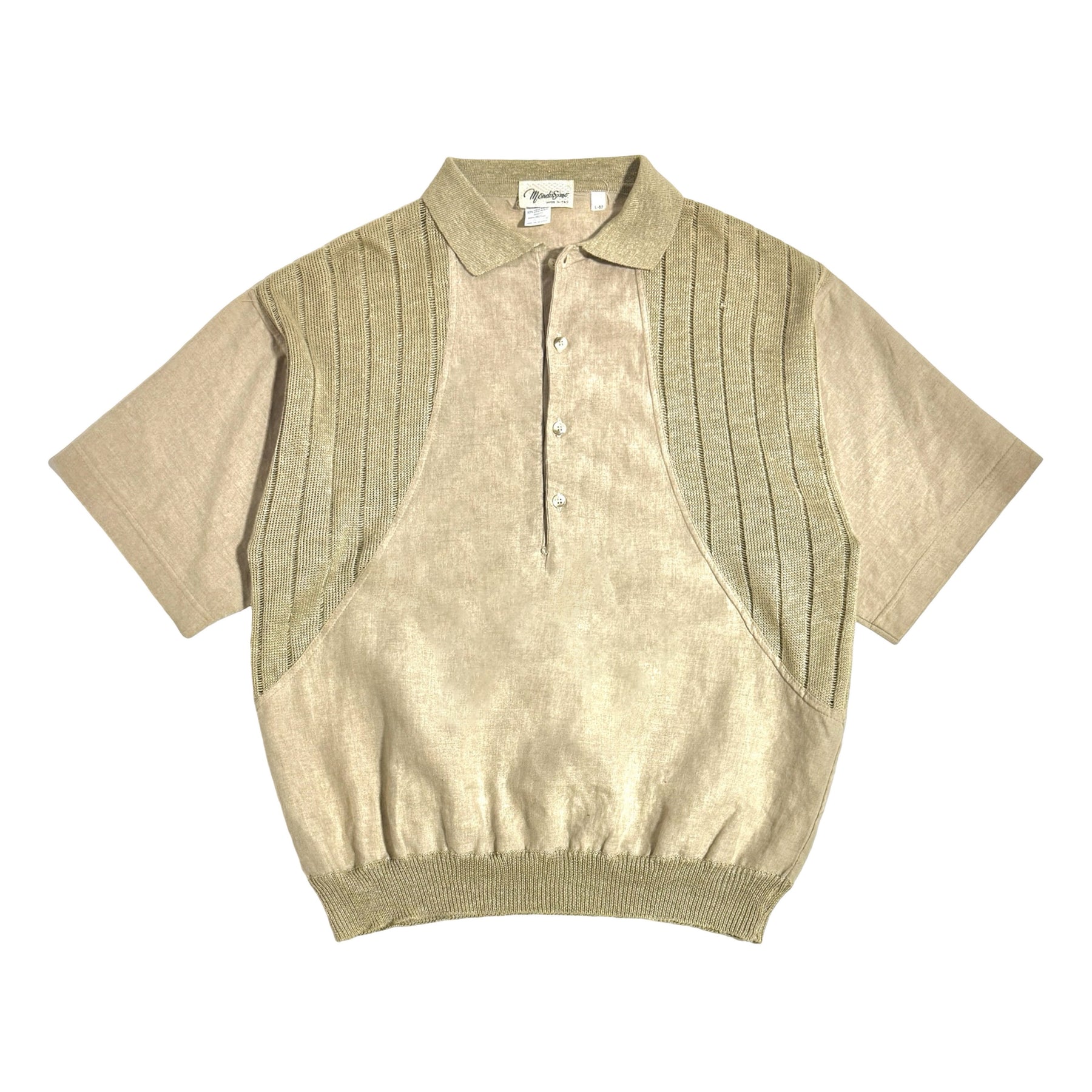 1950’S MASK HANDMADE SELVEDGE FLECKED SLUB LINEN FLAP POCKET LOOP COLLAR S/S B.D. SHIRT LARGE