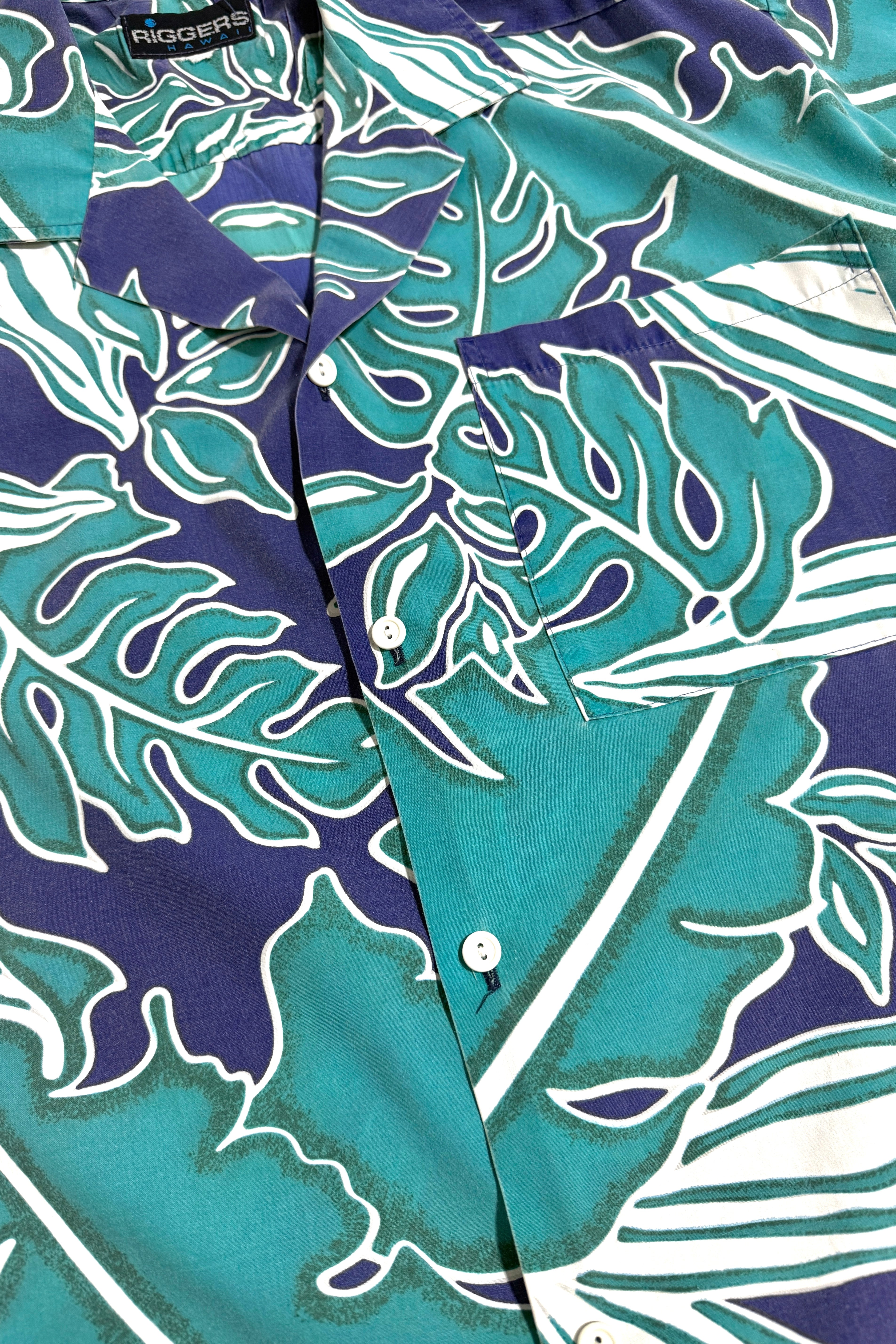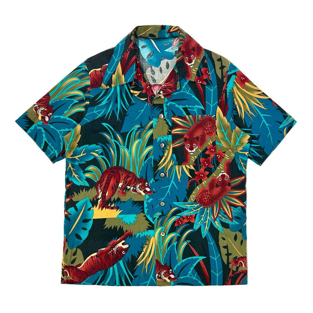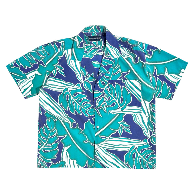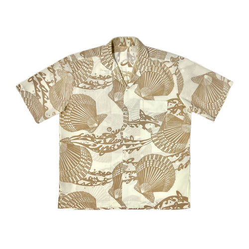 1970’S ALOHA ORIGINALS MADE IN USA CROPPED SELVEDGE BARK CLOTH S/S B.D. SHIRT LARGE