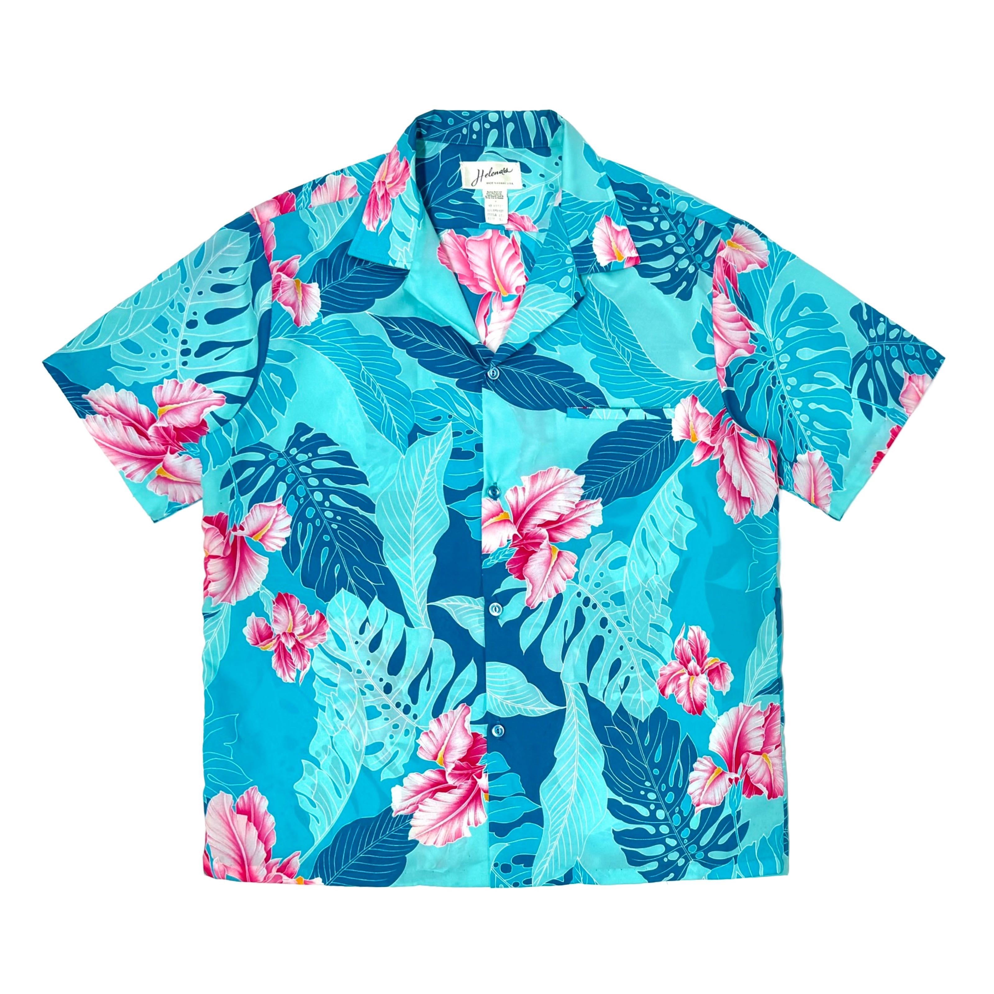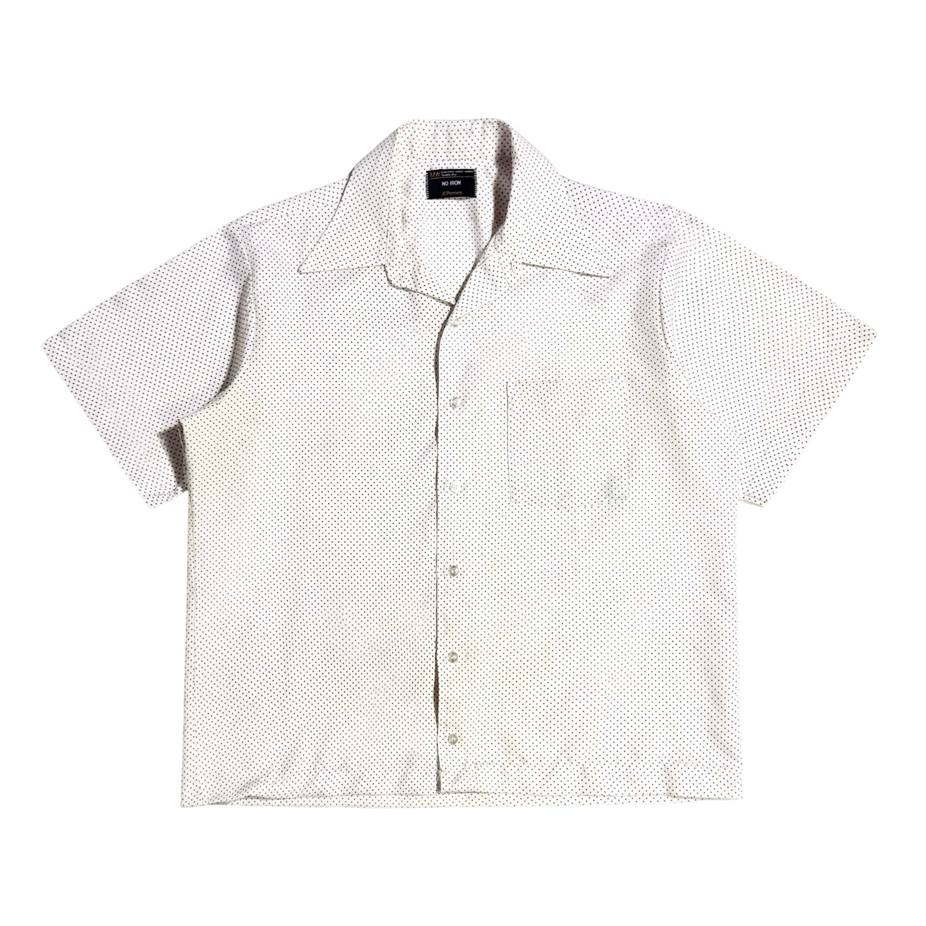 1960’S MASK HANDMADE FLORAL PRINTED SEERSUCKER SELVEDGE FLAP POCKET LOOP COLLAR S/S B.D. SHIRT LARGE