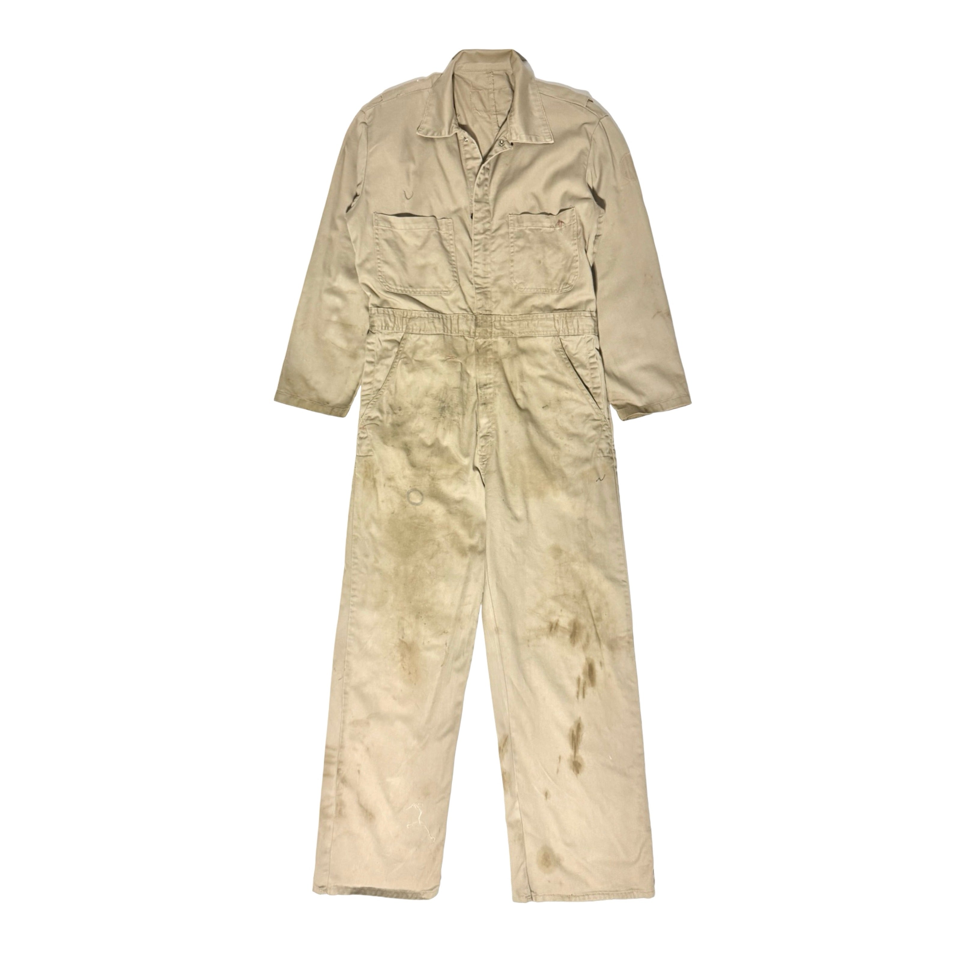 1990’S WALLS MADE IN USA THRASHED AND FADED KHAKI TWILL COVERALLS MEDIUM