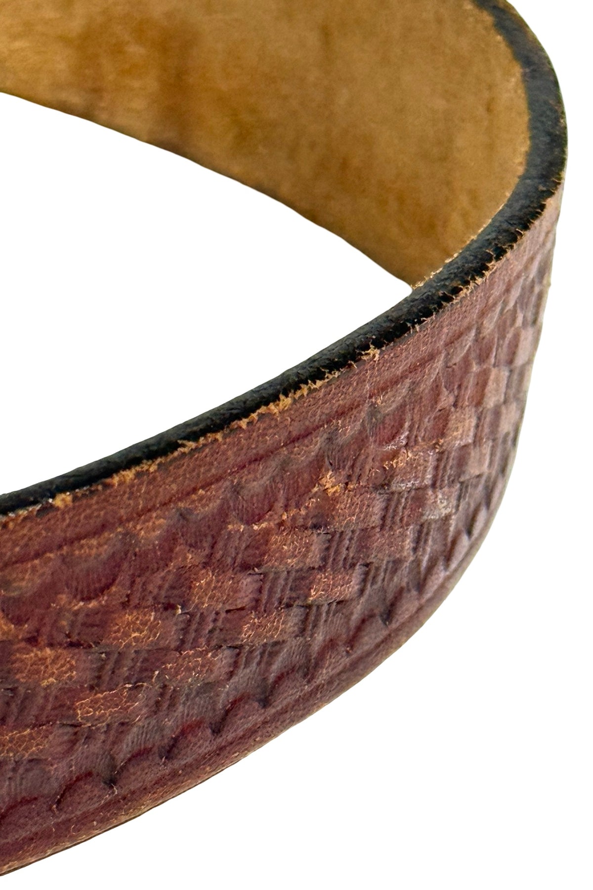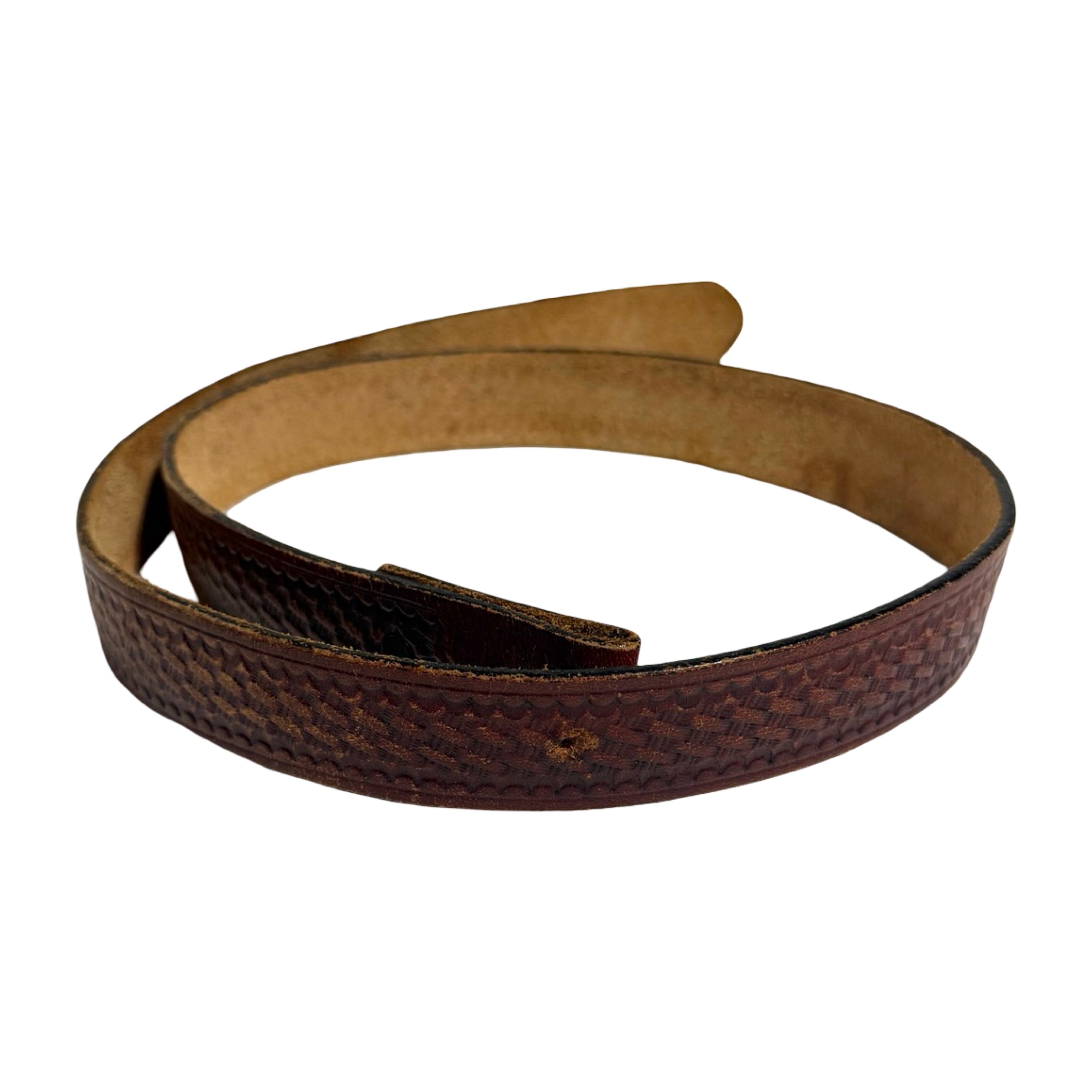 1960’S WESTERN MADE IN USA HAND TOOLED BRAIDED DESIGN LEATHER BELT MEDIUM