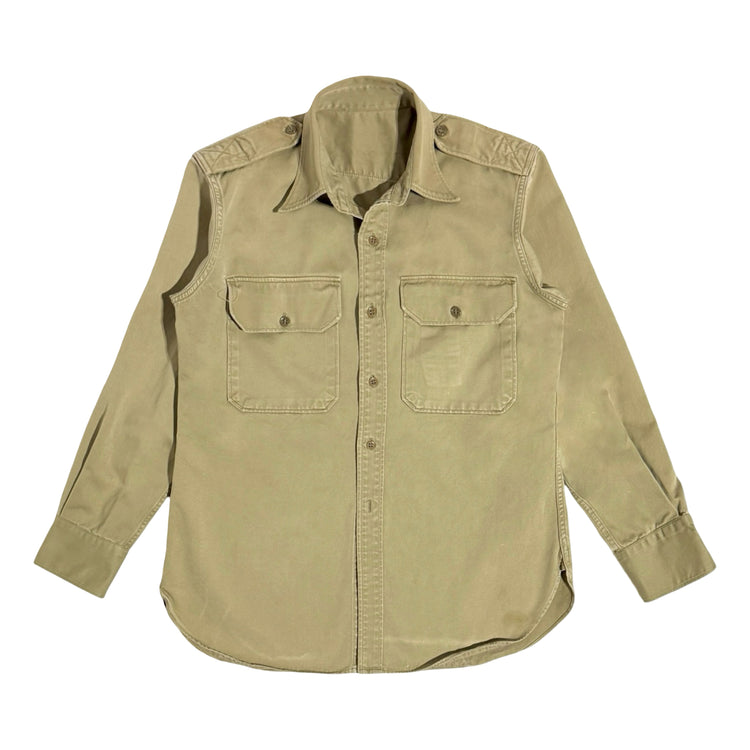 1940’S US ARMY MADE IN USA COTTON KHAKI FIELD L/S B.D. SHIRT MEDIUM