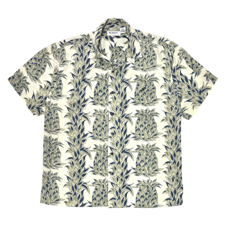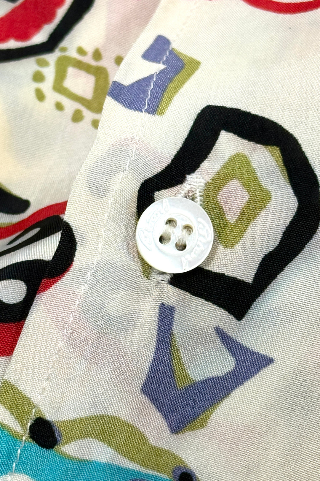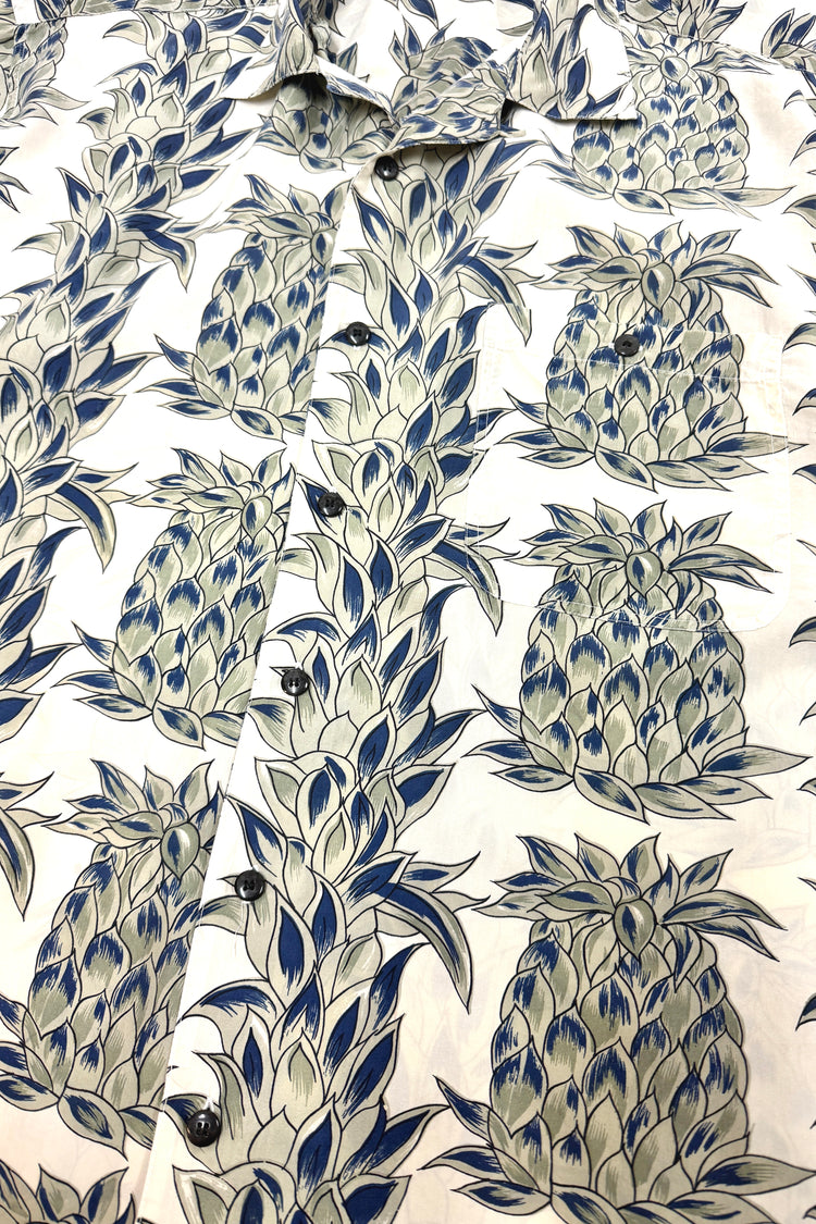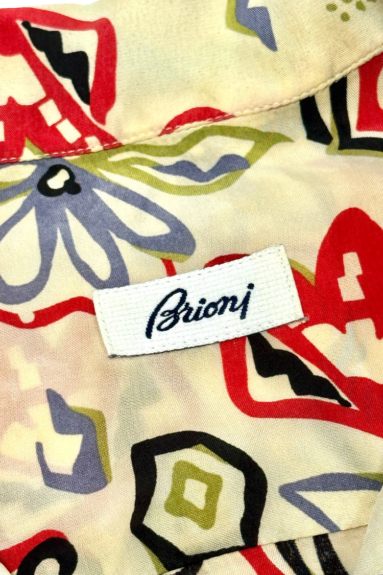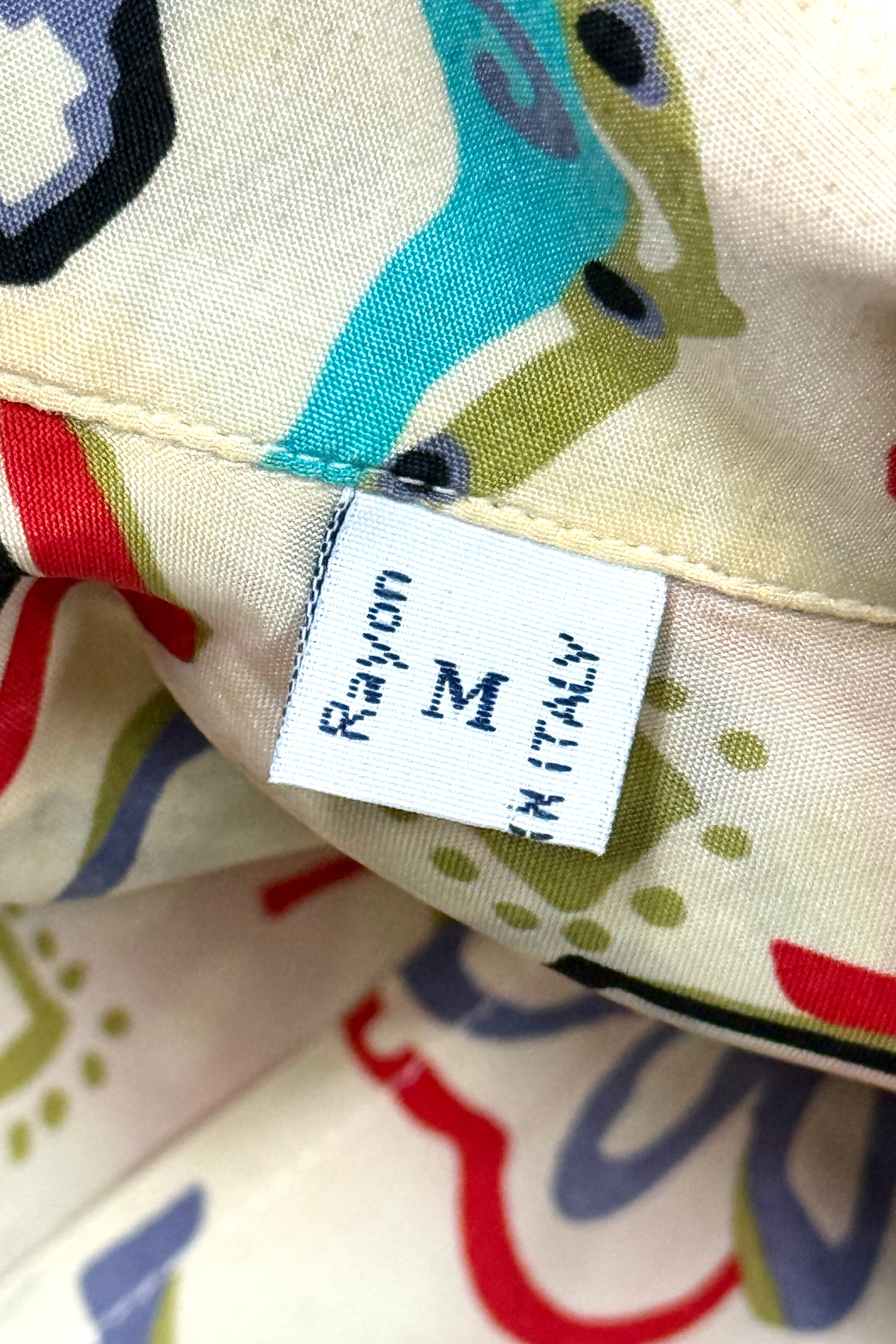 1950’S DONEGAL MADE IN USA SUN FADED CROPPED DRAPEY SELVEDGE RAYON EMBROIDERED LOOP COLLAR S/S B.D. SHIRT MEDIUM