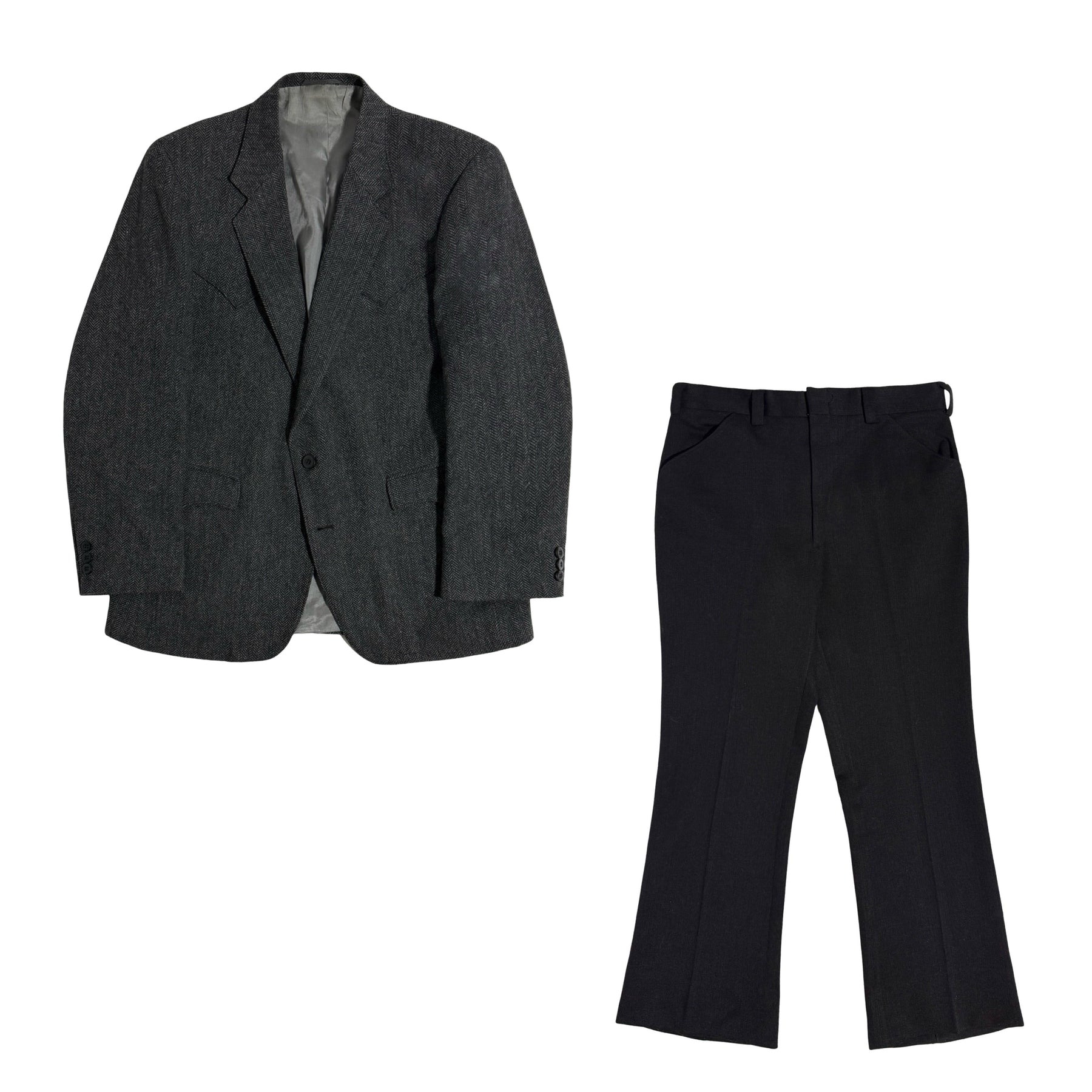 1990’S CIRCLE MADE IN USA HERRINGBONE TWEED WESTERN BLAZER SUIT 42R