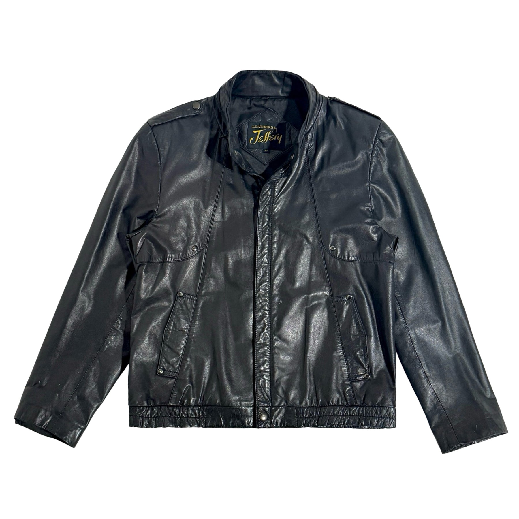 1970’S LEATHERS BY JEFFERY MADE IN USA CROPPED BLACK DISCO MOTORCYCLE JACKET MEDIUM