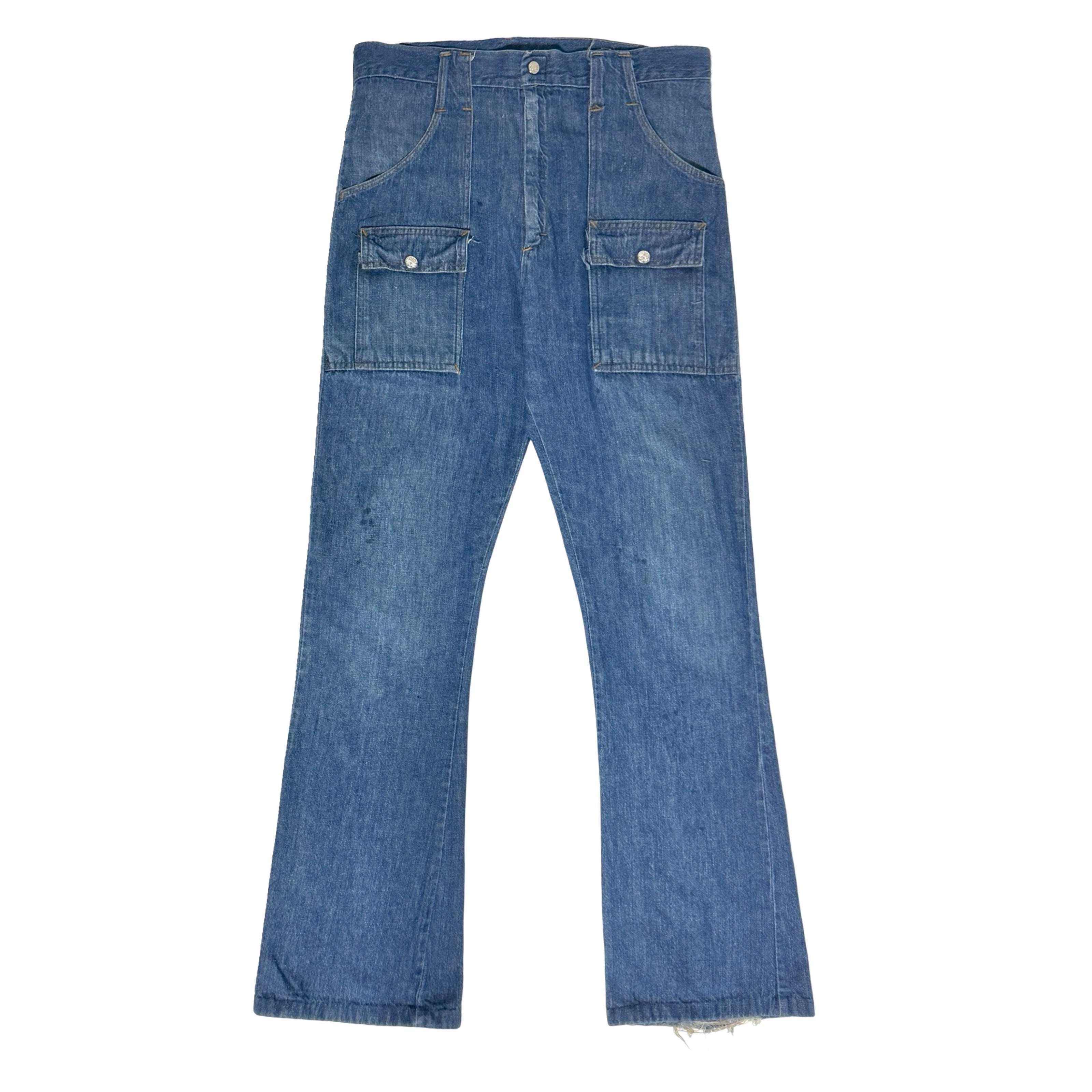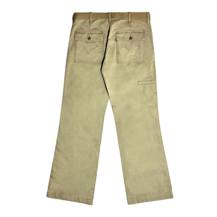 1970’S LEVI’S WESTERNWEAR MADE IN USA “RANCH PANTS” FROG POCKET KHAKI WESTERN FLARED LEG PANTS 34 X 28