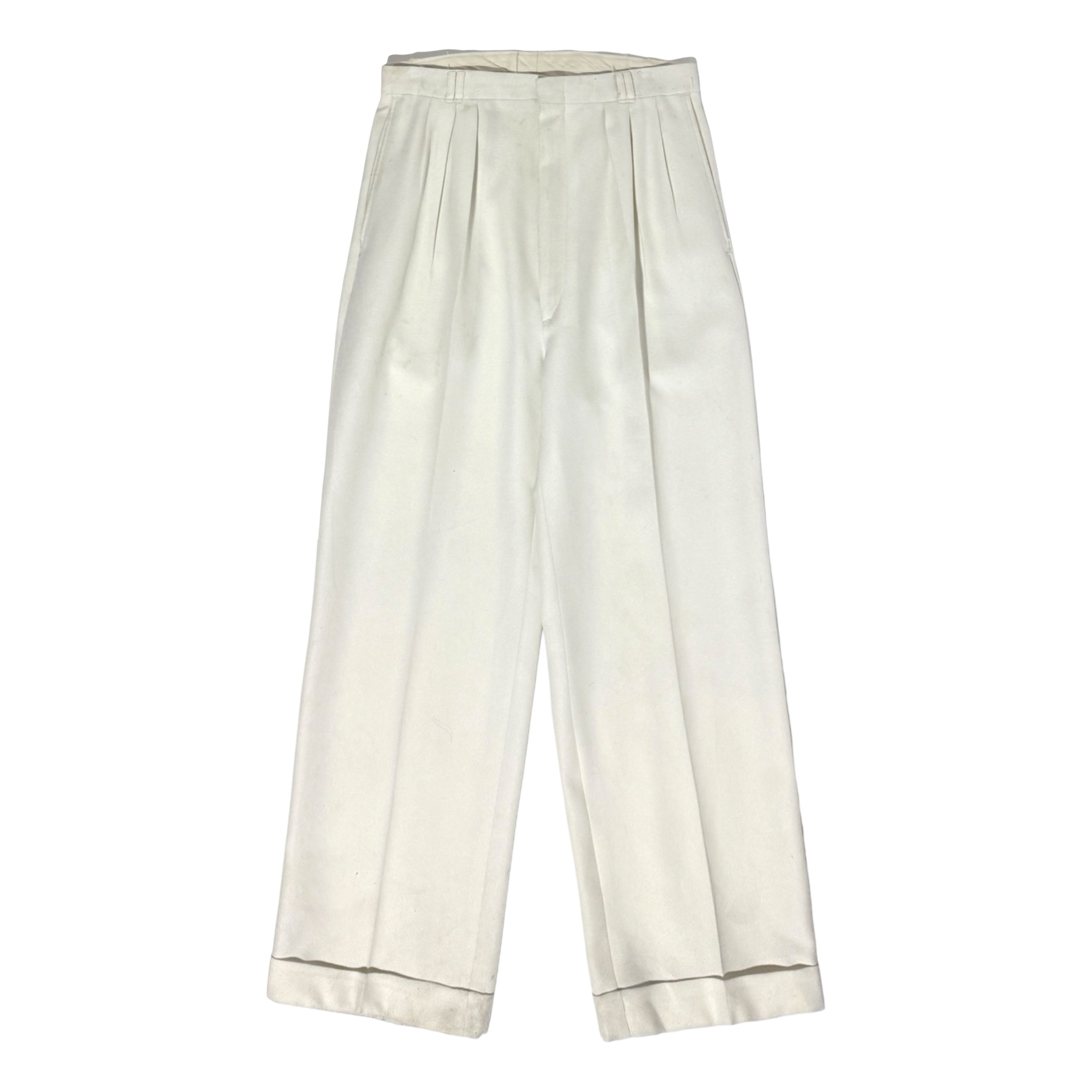 1970’S METRICS UNION MADE IN USA IVORY CREPE WOVEN HIGH WAISTED PLEATED WIDE LEG TROUSER DISCO PANTS 34 X 30