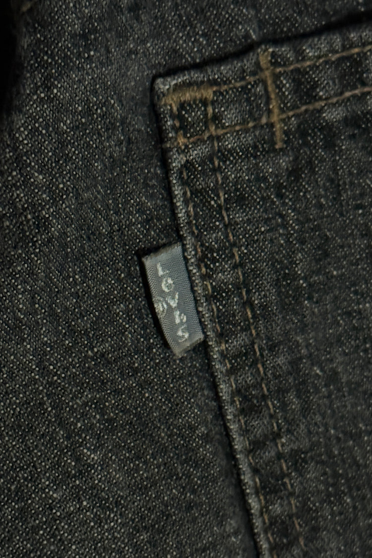 1990’S LEVI’S 501 MADE IN USA FADED & THRASHED BLACK DENIM JEANS 26 X 32