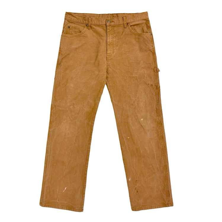 2000’S WRANGLER THRASHED & FADED KHAKI CANVAS CARPENTER WORKWEAR PANTS 30 X 30