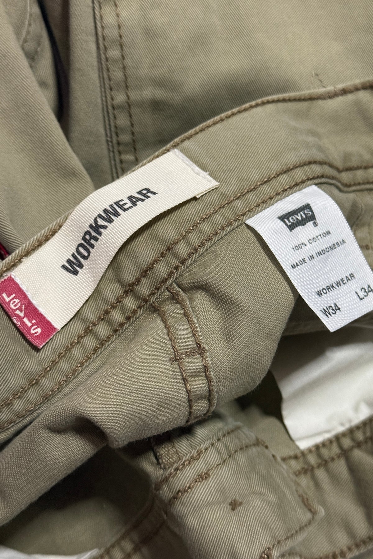 1990’S UNION LINE MADE IN USA KHAKI CARPENTER WORKWEAR PANTS 34 X 34