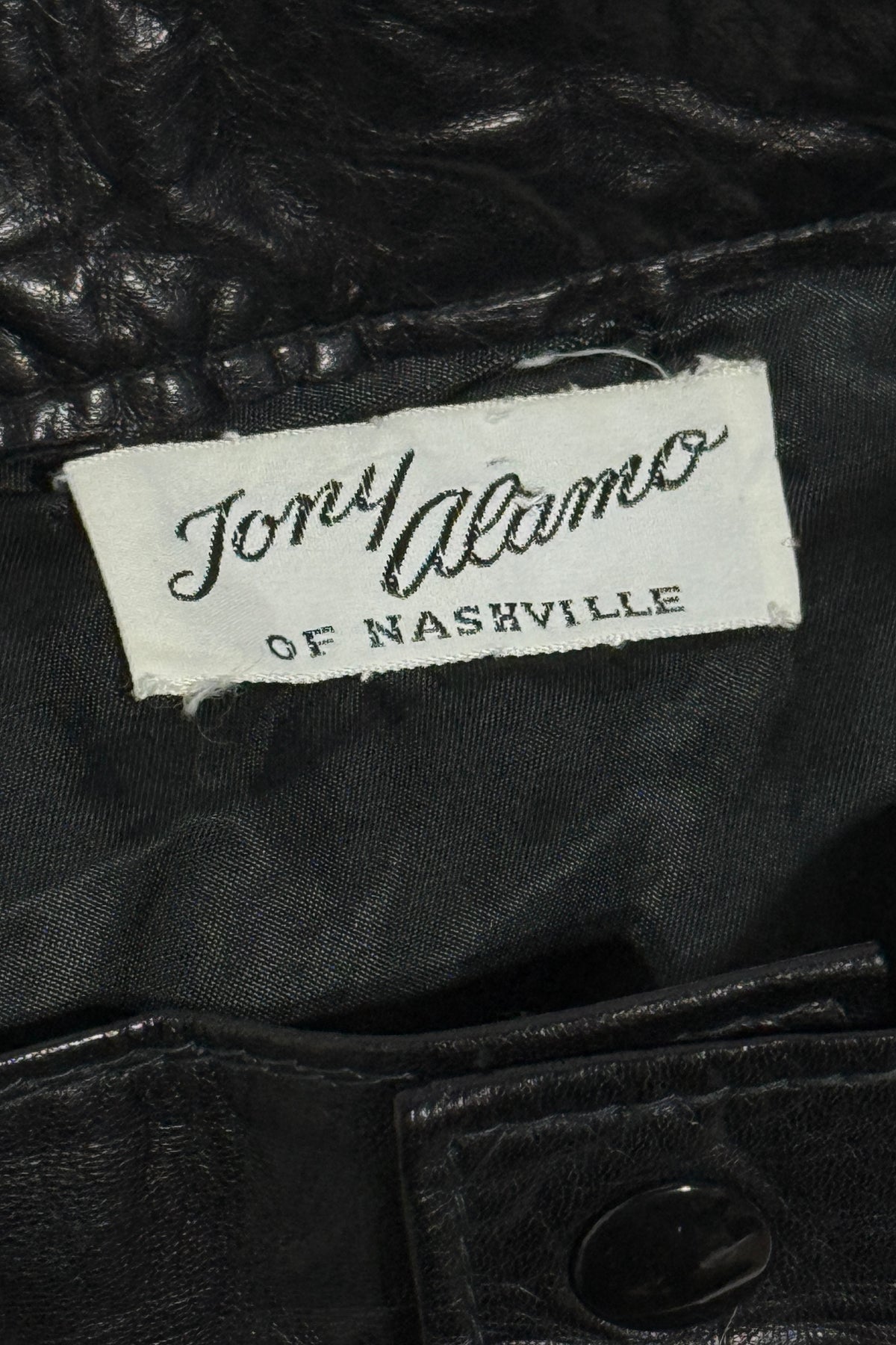 1970’S TONY ALAMO OF NASHVILLE MADE IN USA LAMB LEATHER HIGH WAISTED BOOTCUT PANTS 32 X 34