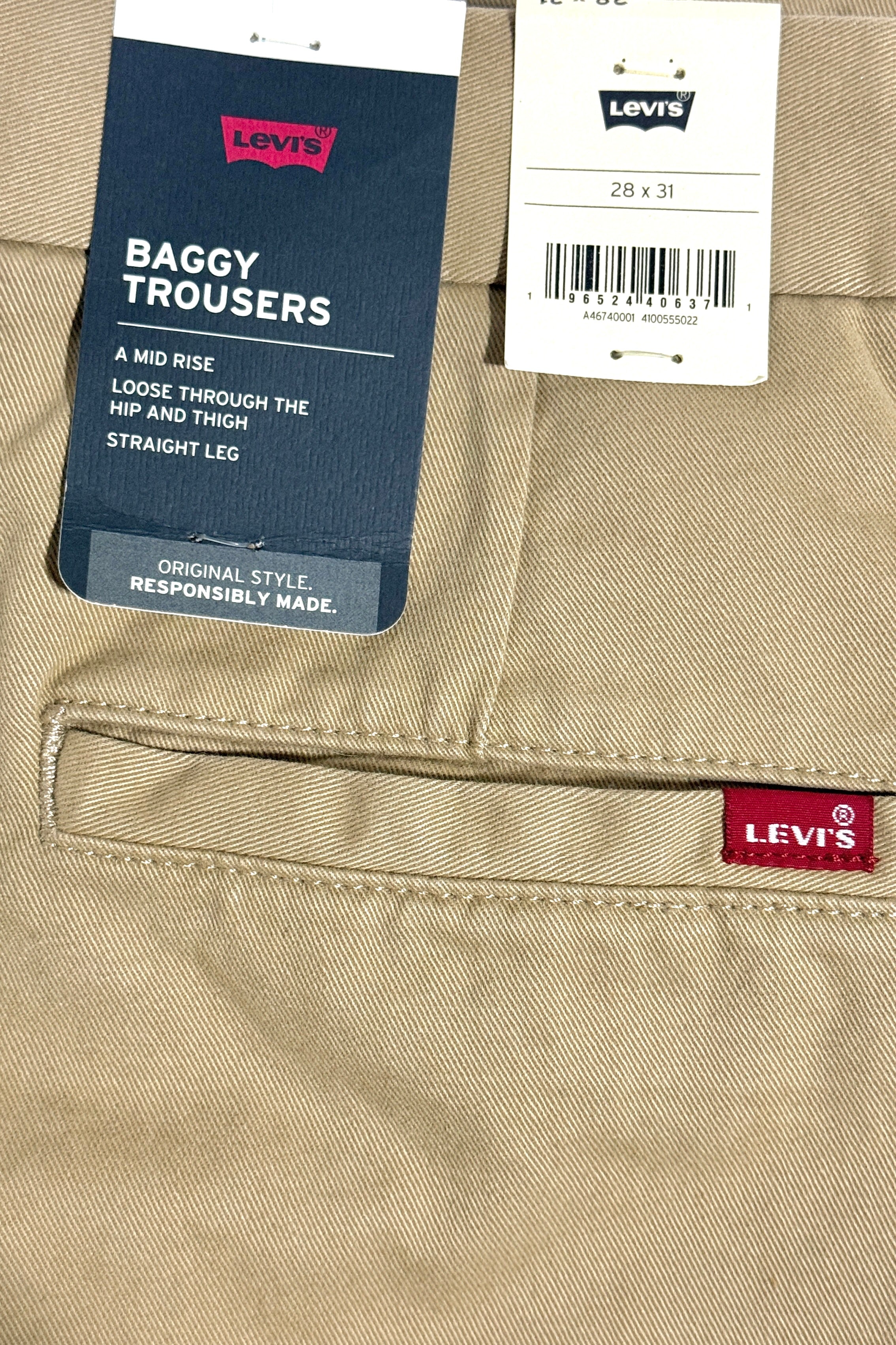 2000’S DEADSTOCK LEVI’S BAGGY TROUSER KHAKI CHINO WORKWEAR PANTS 28 X 30
