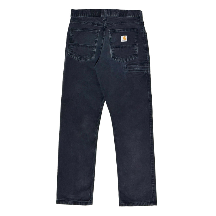 1990’S CARHARTT FADED BLACK DOUBLE KNEE DUCK CANVAS WORKWEAR PANTS 36 X 30