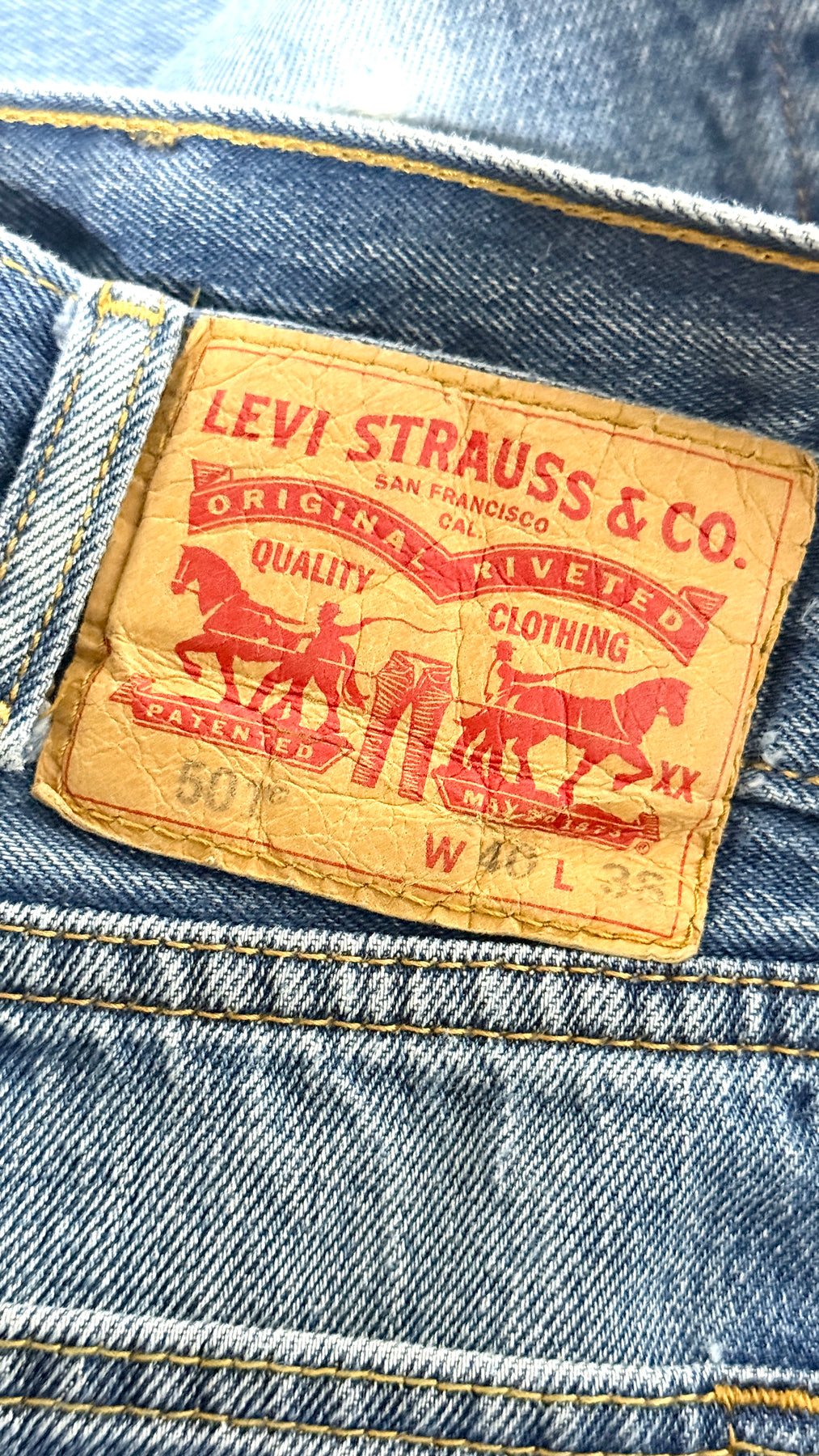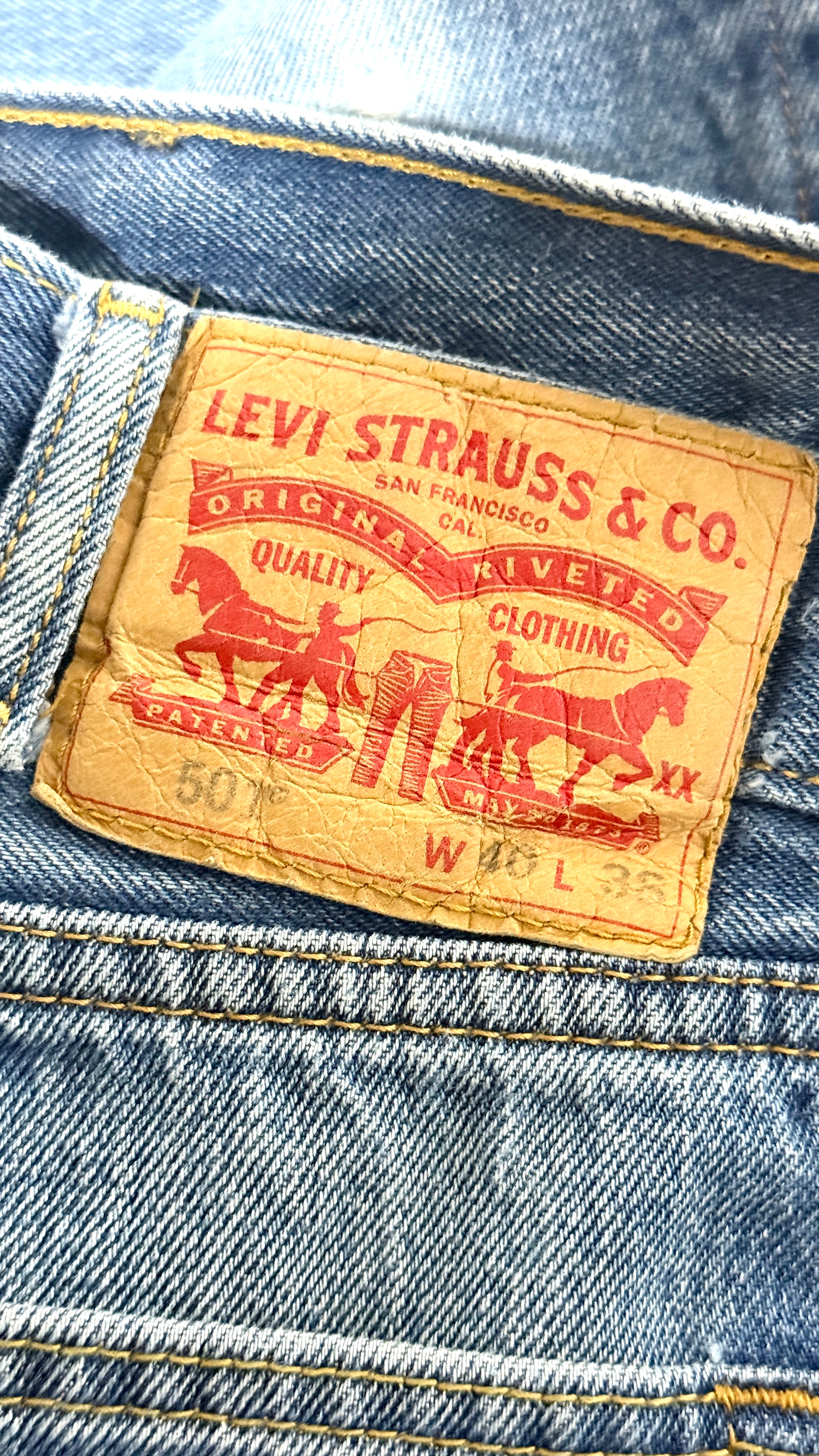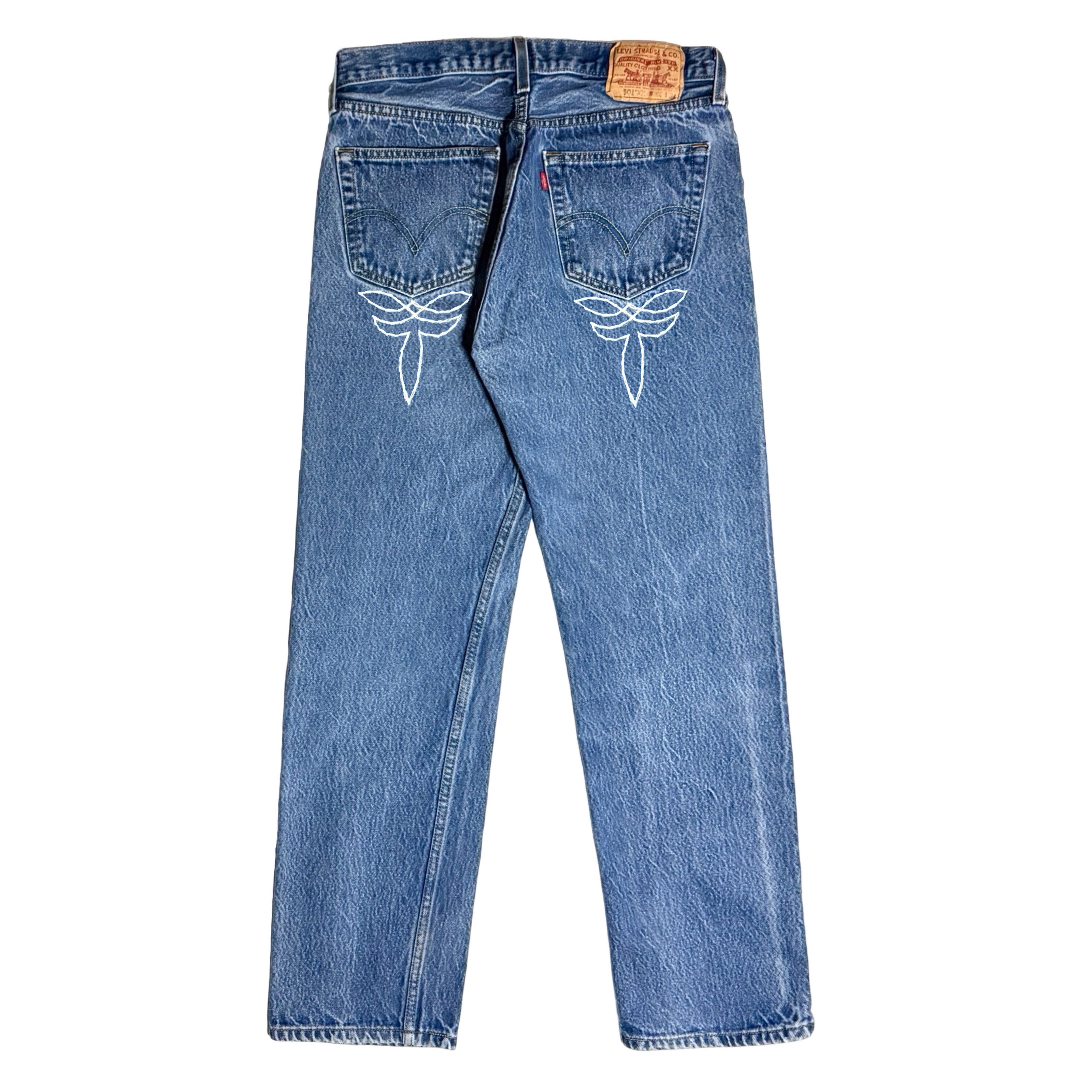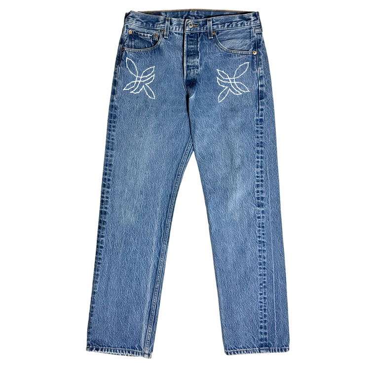 MASK X LEVI’S 501 WESTERN HAND CHAINSTITCHED LIGHT WASH FADED DENIM JEANS SIZE 30 - 36