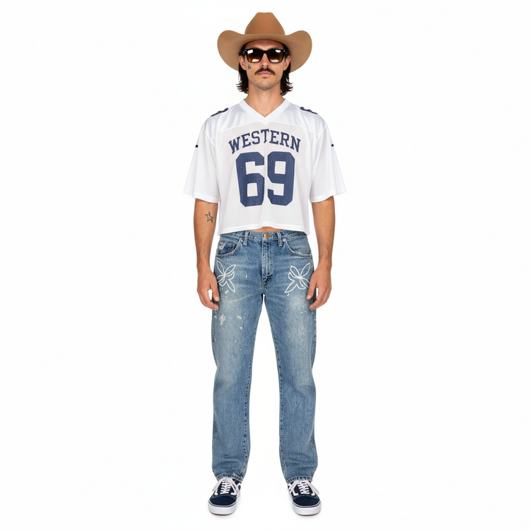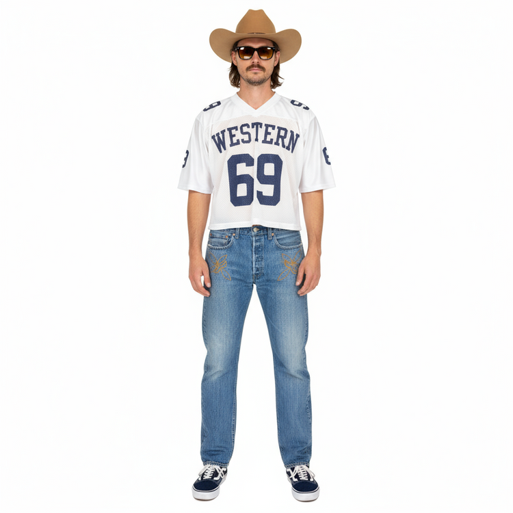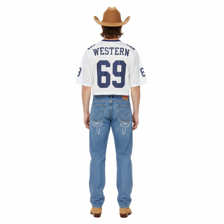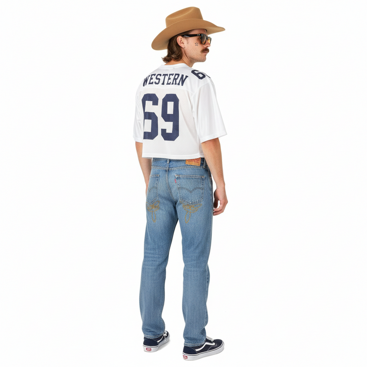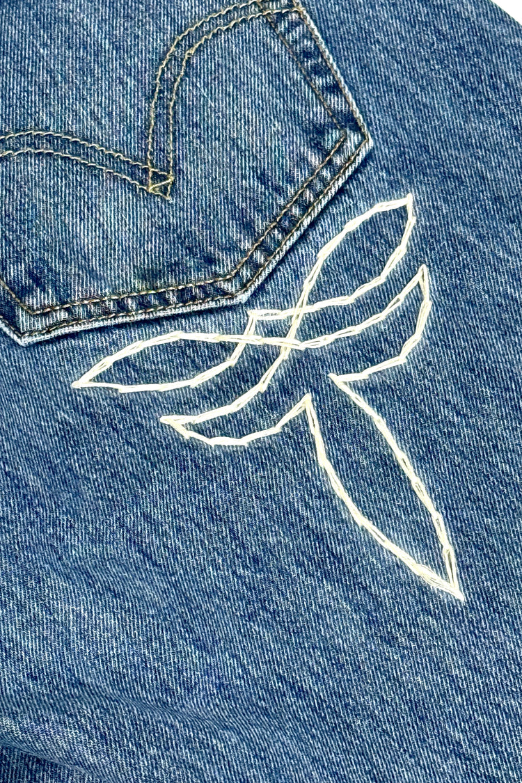 MASK X LEVI’S 501 WESTERN HAND CHAINSTITCHED LIGHT WASH FADED DENIM JEANS SIZE 30 - 36
