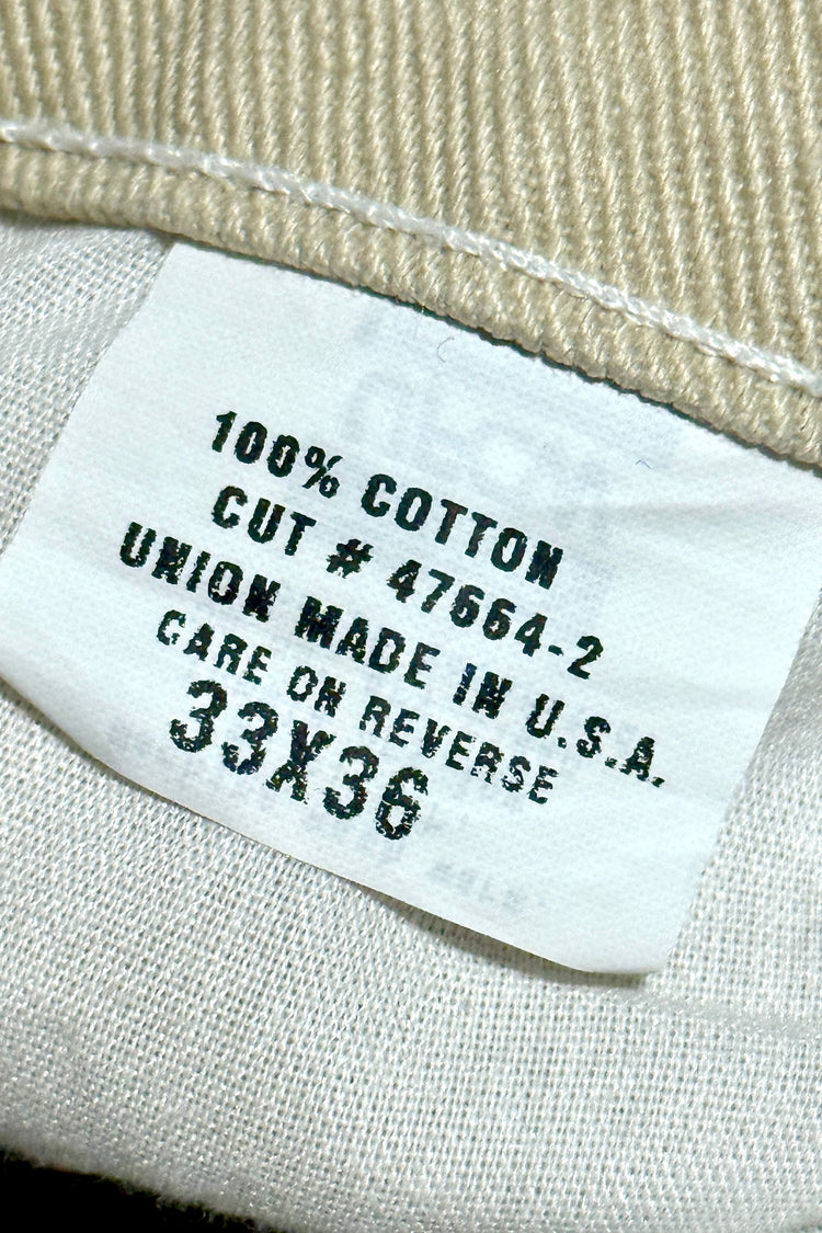 1990’S UNION LINE MADE IN USA KHAKI CARPENTER WORKWEAR PANTS 34 X 34