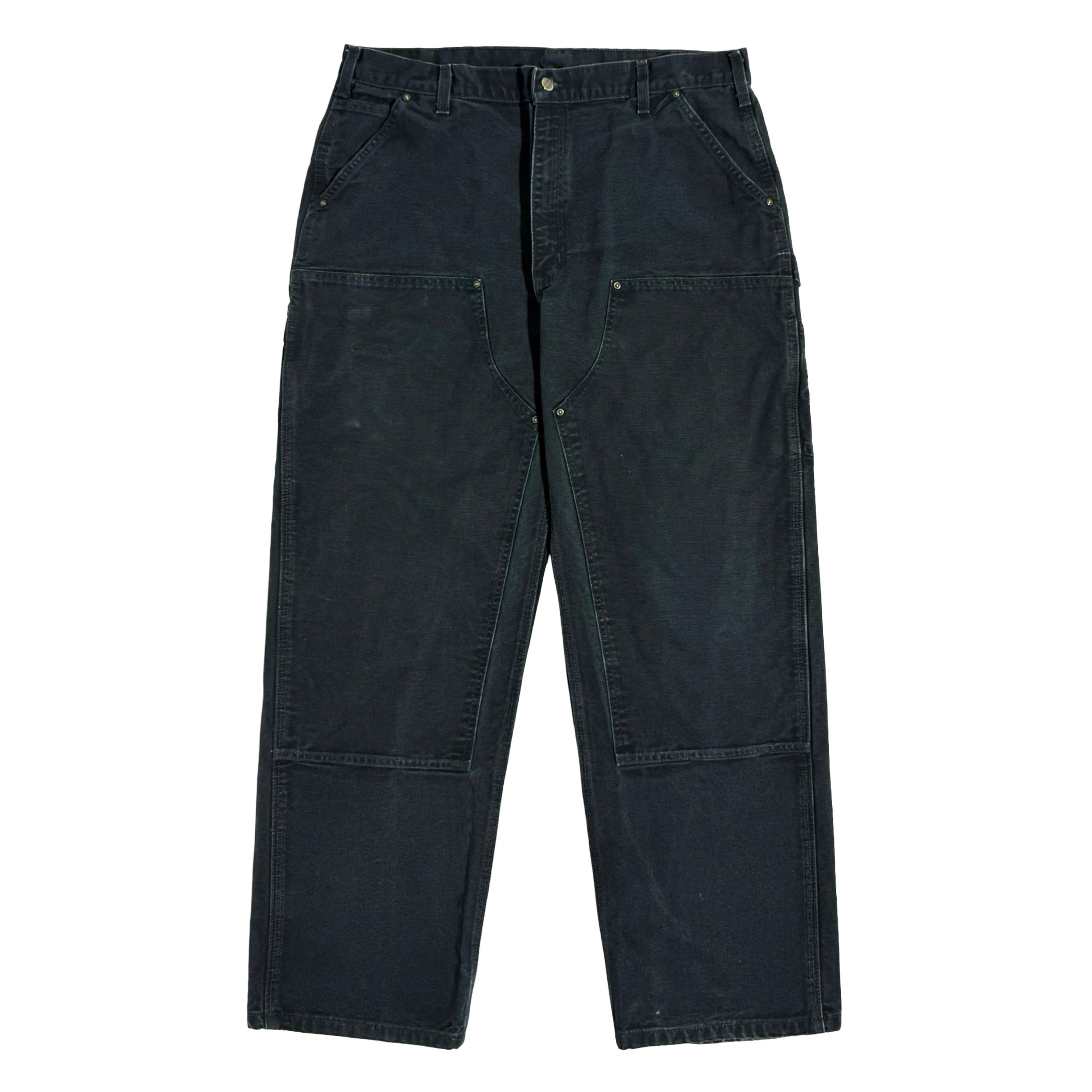 1990’S CARHARTT FADED BLACK DOUBLE KNEE DUCK CANVAS WORKWEAR PANTS 36 X 30
