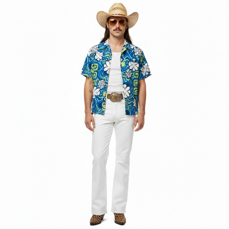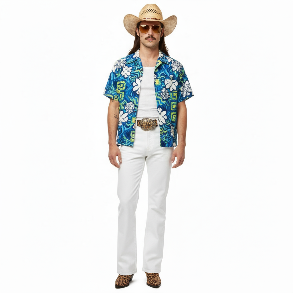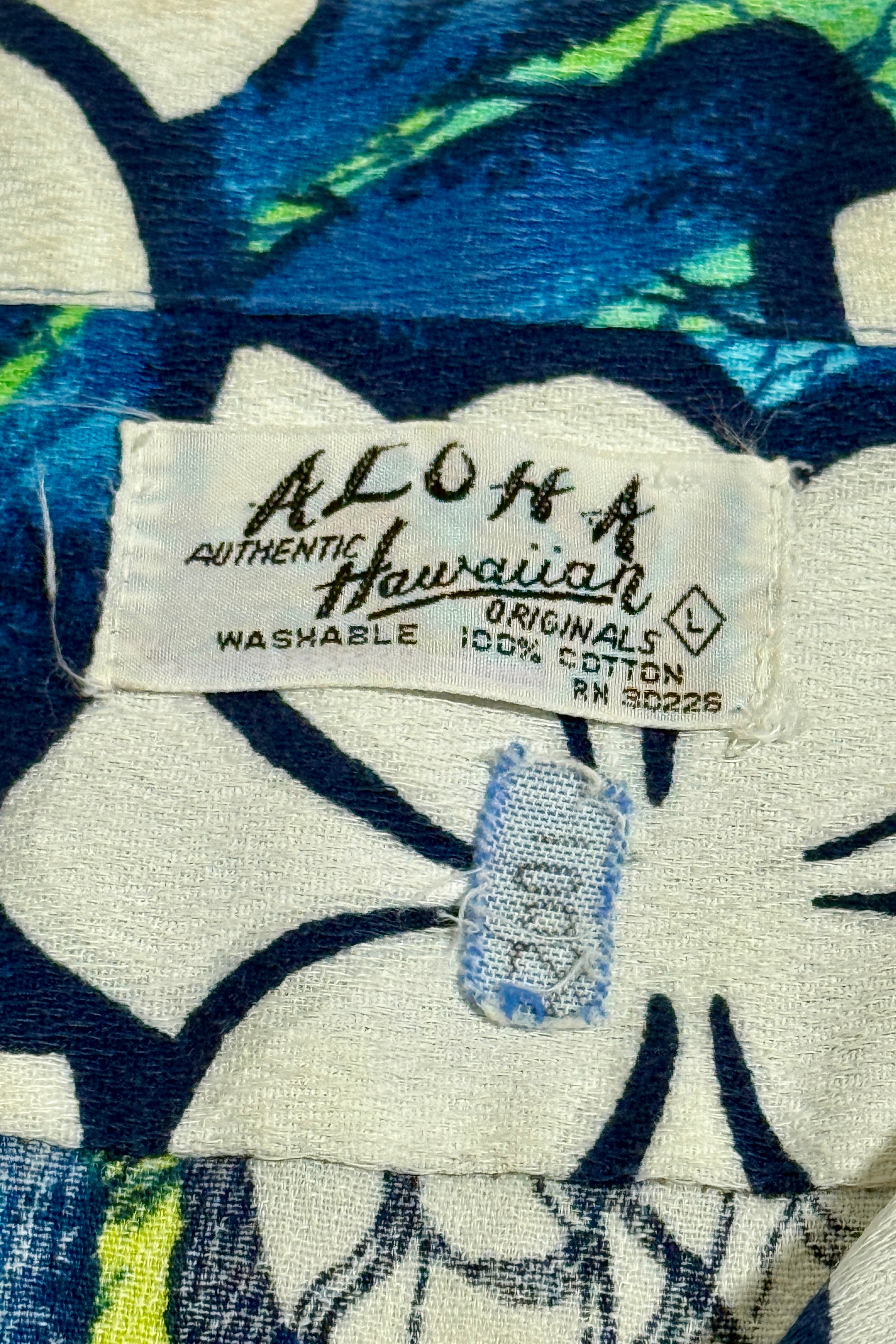 1970’S ALOHA ORIGINALS MADE IN USA CROPPED SELVEDGE BARK CLOTH S/S B.D. SHIRT LARGE