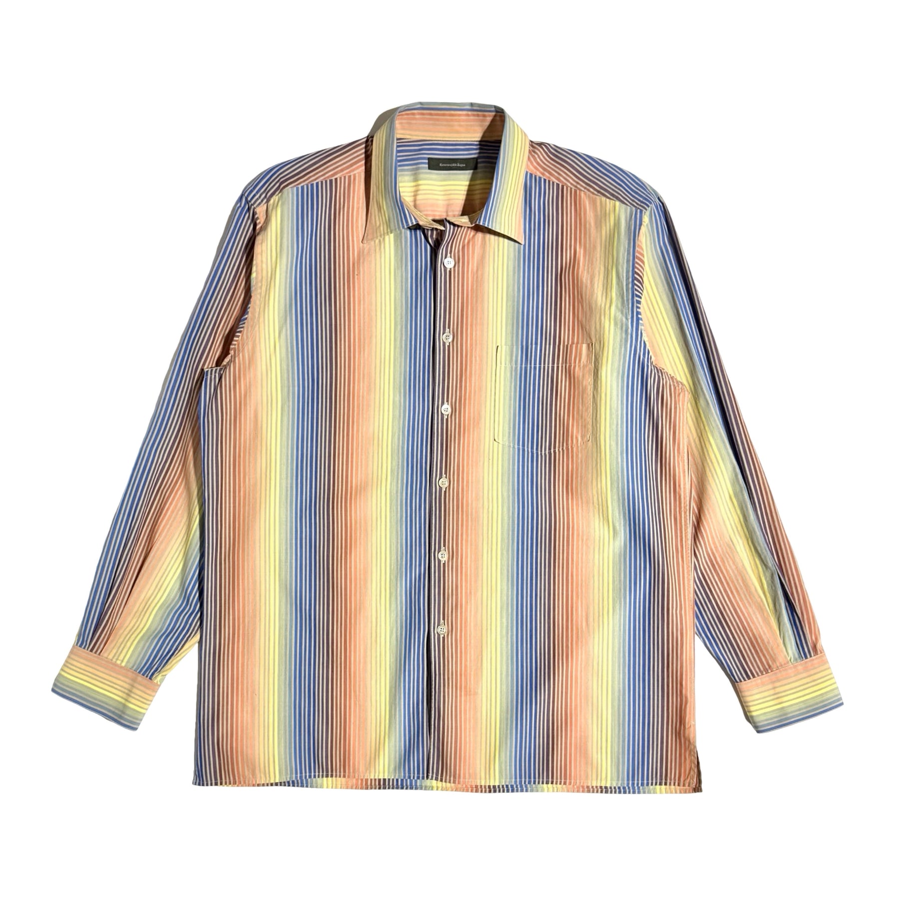 2000’S ERMENEGILDO ZEGNA MADE IN ITALY RAINBOW STRIPED L/S B.D. SHIRT X-LARGE